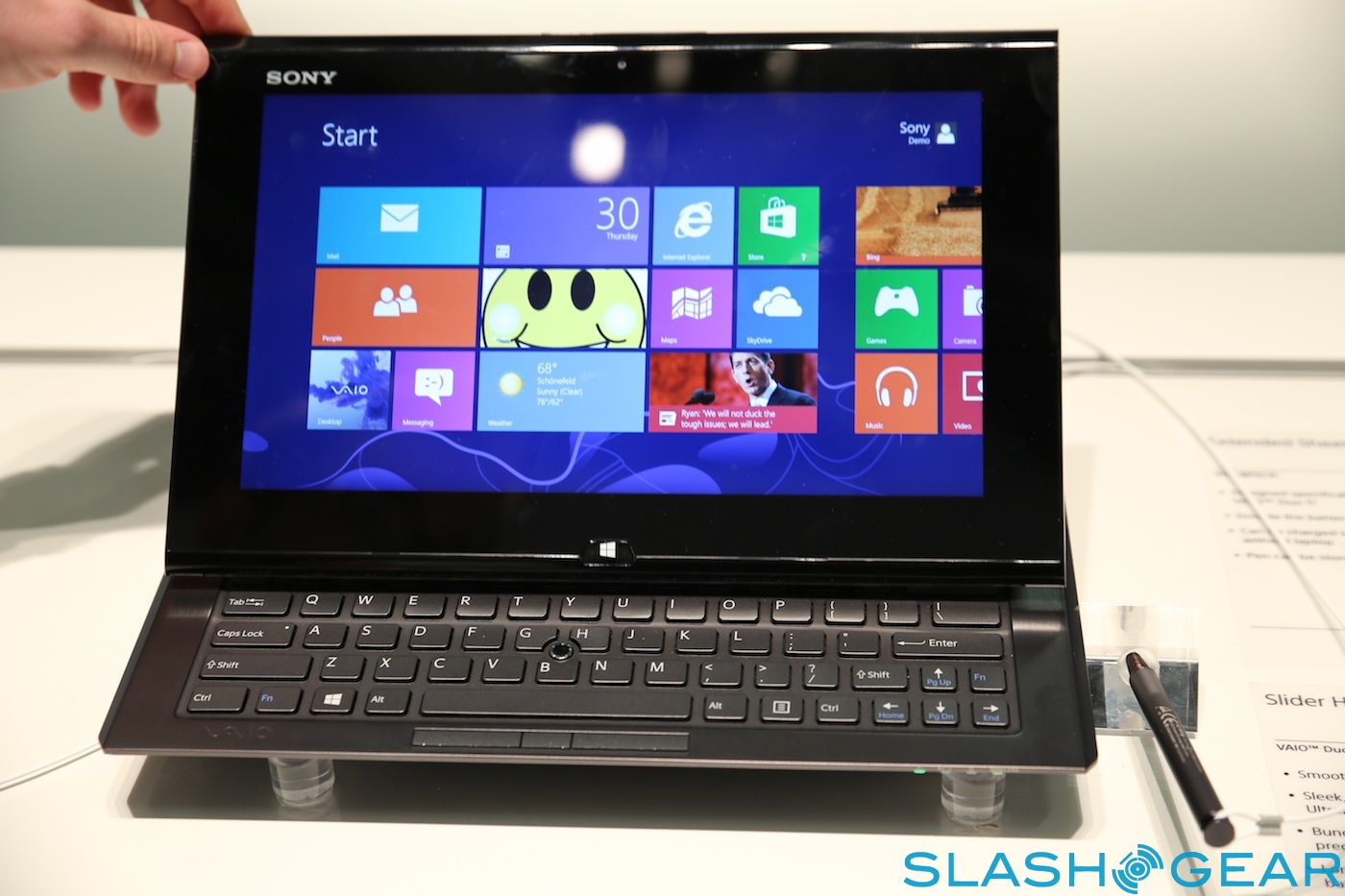 Sony likes to do things differently, and the VAIO Duo 11 is its unusual entrant to the Windows 8 tablet market. Billed as a "hybrid sliding PC" the Duo 11 looks, at first glance, like a chunky tablet, but pull up just above the front-facing webcam and the touchscreen slides back and up to reveal a full QWERTY keyboard. It's an approach we've seen before, from the ASUS Eee Pad Slider, but here running Microsoft's full Windows platform and with a digital stylus for handwriting and sketching.