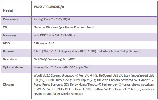 The all-in-one 24" VAIO L Series family multimedia PC by Sony is available from the end of March 2011.