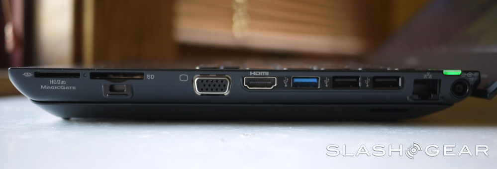 This notebook is just 3.65 pounds, is relatively thin, and is set to be your own personal workhorse with not just a 4400mAh battery inside, but an additional 4400mAh Sheet Battery you can also purchase separately that effectively doubles your work time. This beast has two USB 2.0 ports, one USB 3.0 port, VGA out, HDMI, SD card and Sony HG Duo MagicGate card readers, ethernet port, and headphone jack. This laptop features a CD tray which you're able to use as a CD/DVD burner or you can upgrade to a Blu-ray Disk player for an additional $100.