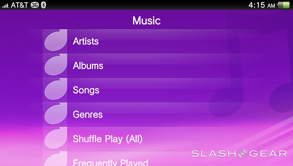 The menues and interface for Music is essentially the same as Videos with the added benefit of being able to play, pause, and move through tracks from the LiveArea card the only real big difference. There's also the fact that PlayStation doesn't have music in its store which allows for a much cleaner LiveArea panel devoid of ads for new releases.