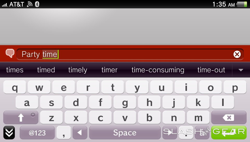 This app allows you to send messages out to your friends without needing to be in a Party. While a Party is made more for events that last for a short period of time, Group Messaging works more like texting where it doesn't matter if a person is actively engaged on their device at the time the message is sent or not. It's here that you may very well start to notice that the keyboard you're using is not that unlike Android's own most recent couple of iterations of a keyboard: switch to alternate keys with the option keys in the lower left, get a satisfying "tic" noise for every button tap.