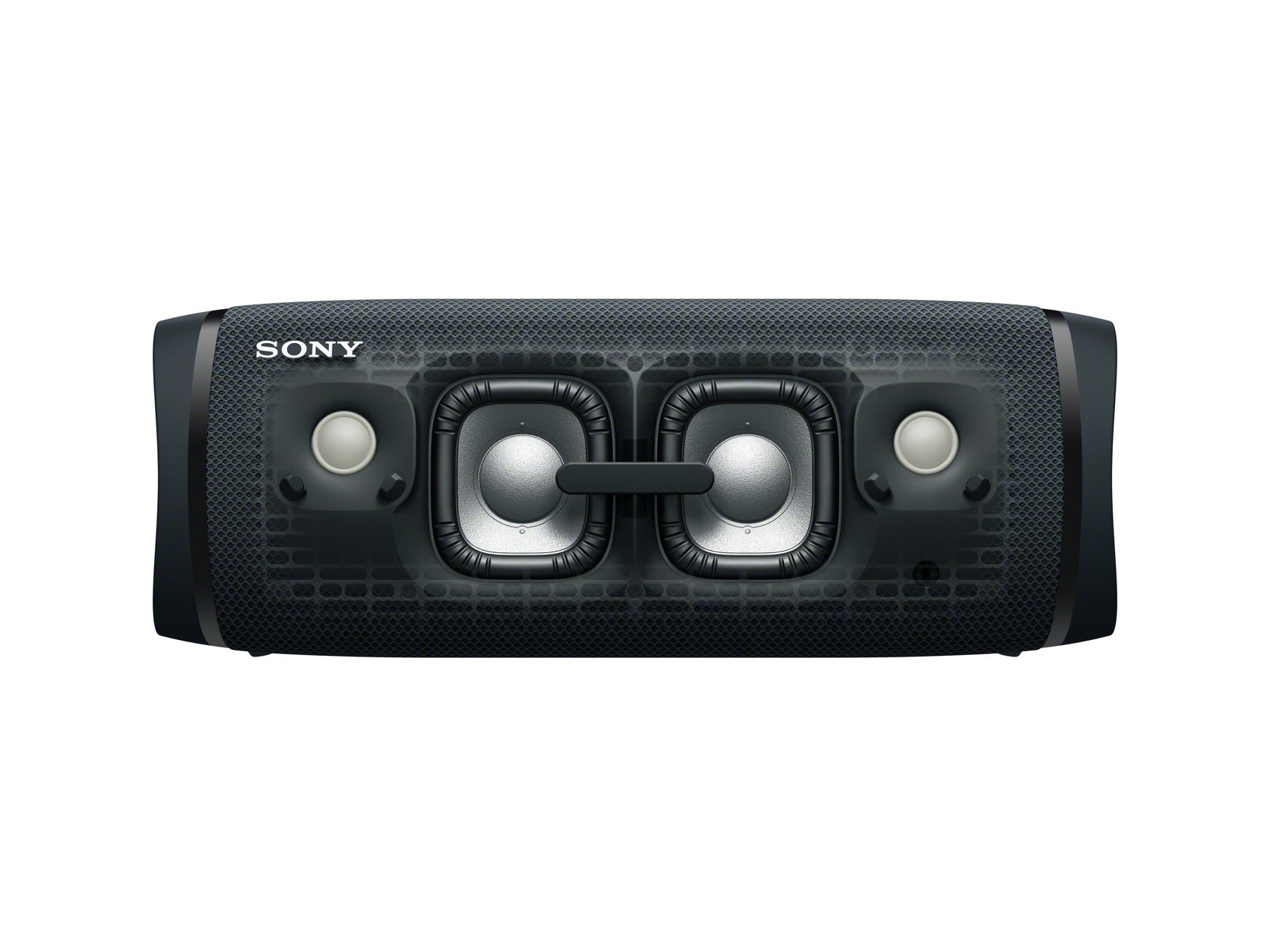 Biggest of the three, the XB43 is 30-percent larger than its predecessor, and now uses a squared-off design. Sony has moved the passive radiator, and there are now two tweeters begin the fabric grille, too.