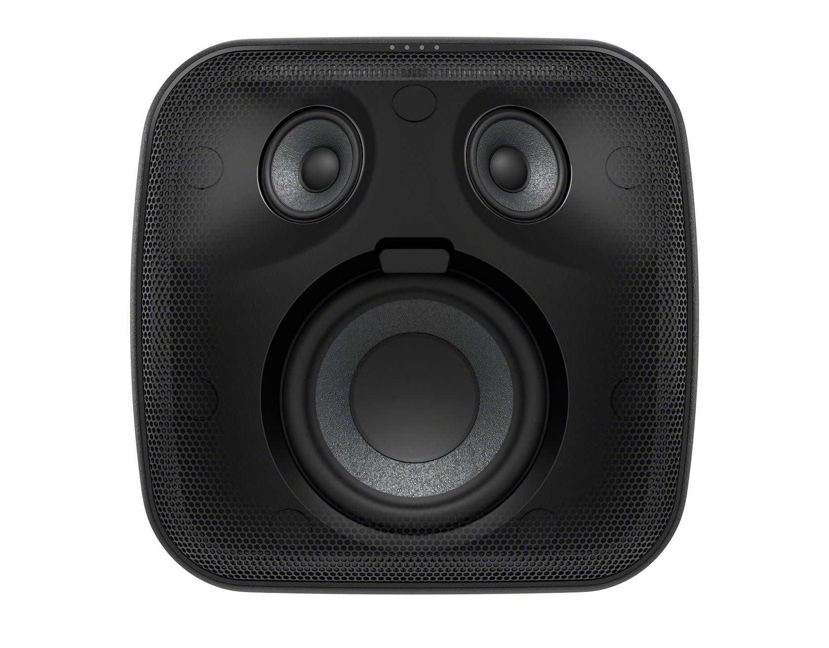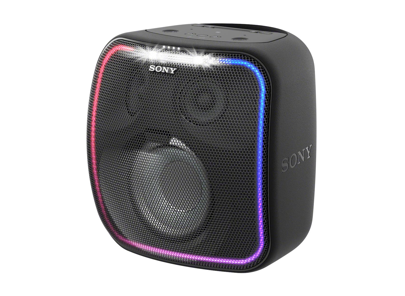 The front has Sony's LED light ring, which flashes in different colors in time with the music. There's also a strobe bar mounted across the top of the tweeters. Happily for those wanting just their favorite album and not a Jean-Michel Jarre show, you can turn it all off.