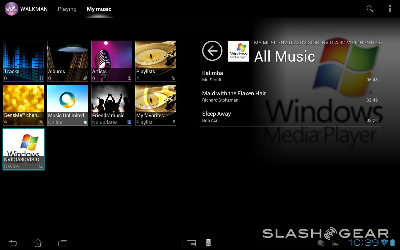 Sony adds a collection of their own apps to this machine that include a Sony vision for the photo album, movies, ereading (with connectivity to the "Reader" collection of books), Walkman (showing your music on the device and Sony-purchased music), Sony Select (shortcut to the website), and Socialife (for social networking). You can also connect to Music Unlimited from Sony, Video Unlimited, and PlayMemories (collecting your photos into digital albums for sharing with the web).