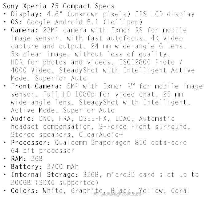 Xperia Z5 and Z5 Compact will launch globally from October 2015, and Xperia Z5 Premium from November 2015.