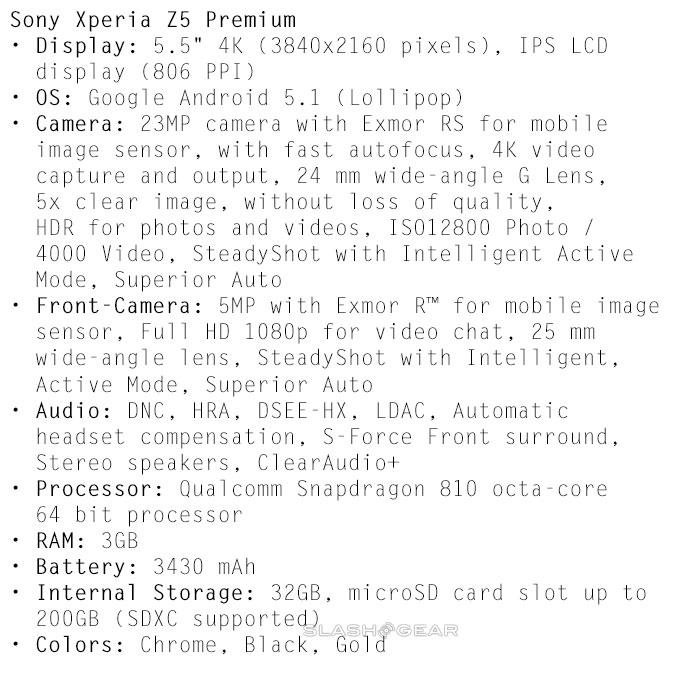 Sony Xperia Z5 Premium Revealed And Detailed With 4K Display