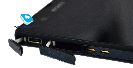 The phone itself is said to be constructed from glossy plastic, and to feel hefty and well-crafted when held. It utilizes on-screen buttons, so the face is button-free with its smooth surface marred only by the speaker and microphone grates. On the back you'll find an LED flash and a 12-megapixel camera, as well as a microphone for video recording. The left edge holds a microUSB and microHDMI port, while the right side features a volume rocker.