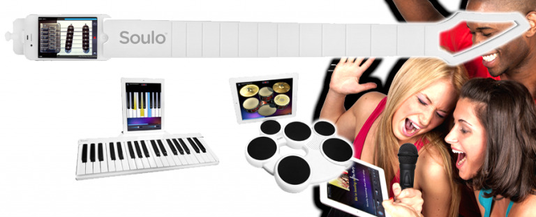 Each of the instruments, the drums, keyboard, and guitar, plus the updated Soulo mic also announced this week will work together to create one big immersive Soulo music experience, each of them compatible with all of your iDevices. You've got enhanced audio and video recording features as well as holiday-themed song and backgrounds pre-loaded into the app, which is of course free on the iTunes App Store – that available soon.