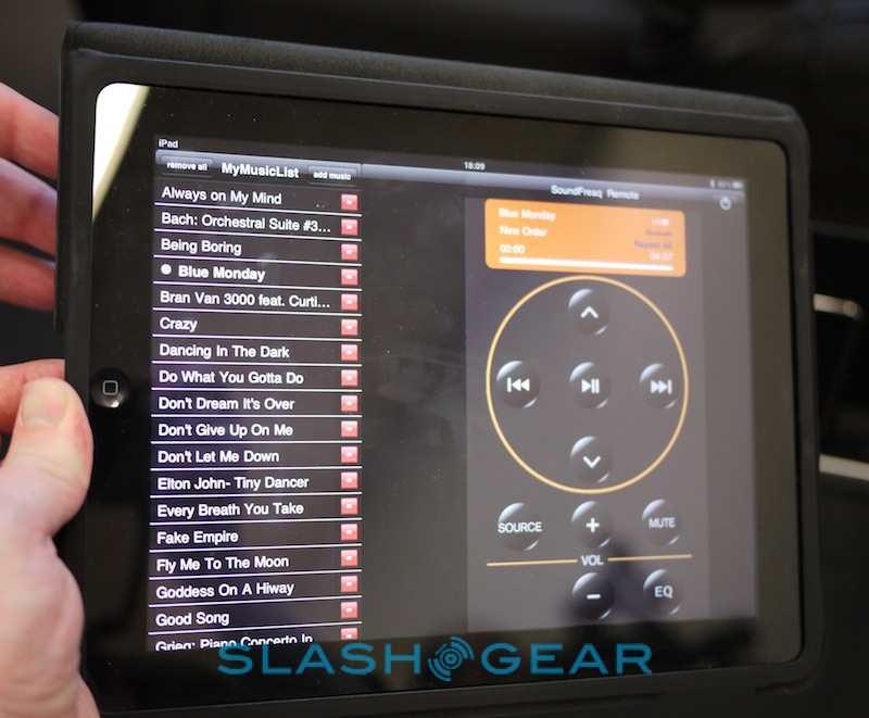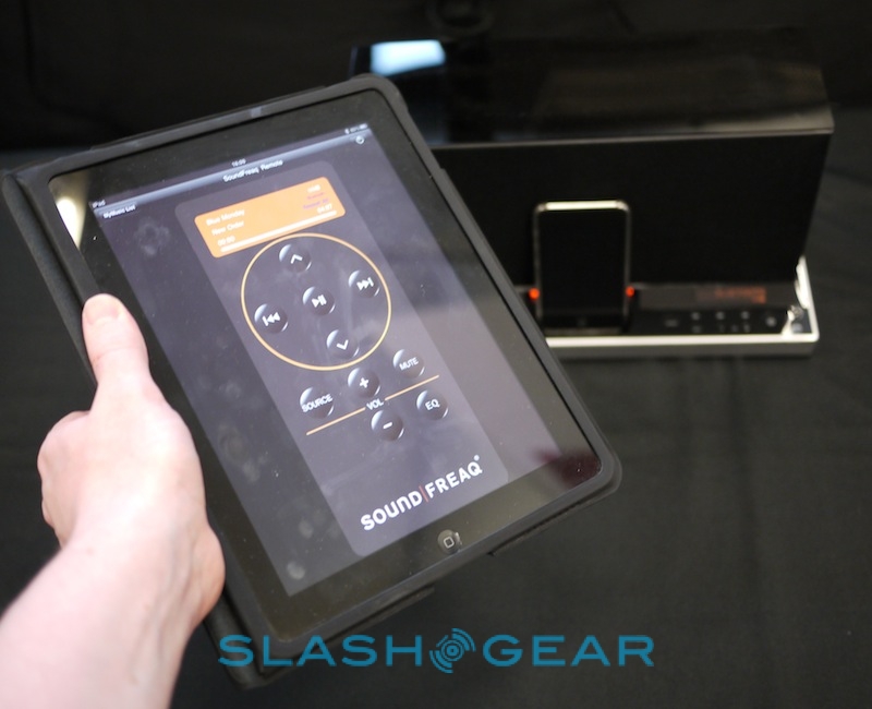 Download the app, and you can switch between the SFQ01's sources – an iPod docked in the speaker itself, the iPad streamed via Bluetooth, an FM radio or an aux-in source – together with remotely controlling the docked PMP or choosing from the iPad's own audio files. Alternatively, you can pipe through music, soundtracks or game audio from the iPad, if you're unhappy with the quality from the Apple tablet's own speaker.