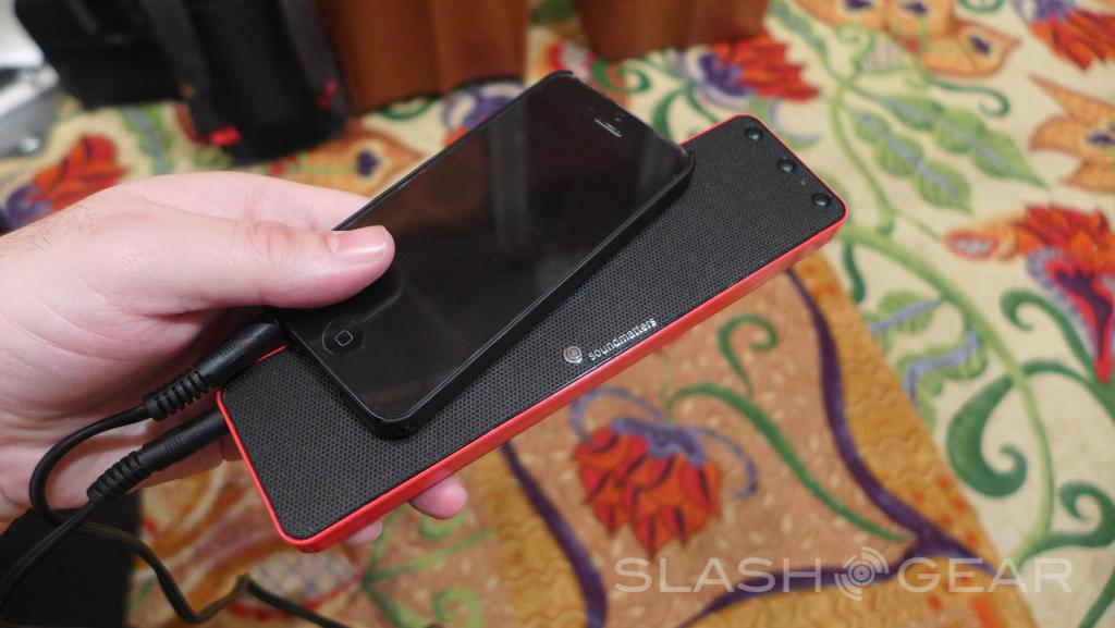 Just like the Jawbone JAMBOX the Dash 7 uses a woofer/tweeter setup for sound, as well as a floating and moving battery to improve bass response. This makes the sound much better, louder, and crisper than you'd expect from such a tiny little speaker. Colors include red, white, black, and silver and the SoundMatters Dash 7 will hit the streets in February for around $219. Pretty big price, but that brings big performance in a small package.