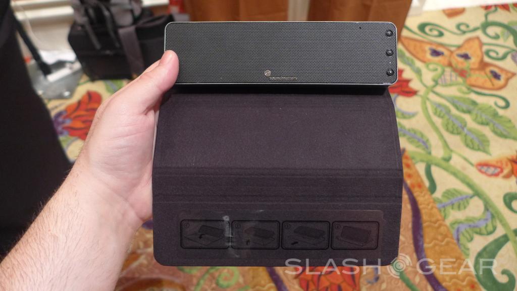 The past few days we've seen countless little Bluetooth speakers, JAMBOX look alikes, and various speakers but the new SoundMatters Dash 7 packs a powerful punch for such a small speaker. First mentioned earlier this year their ultra portable Bluetooth speaker was on display here at CES 2013 for ShowStoppers so we snagged a few photos.
