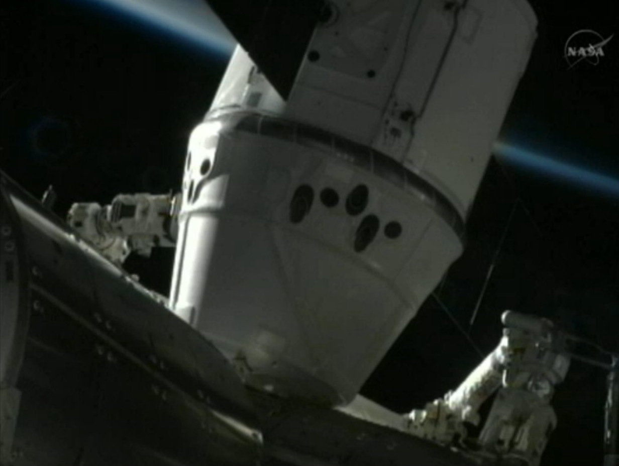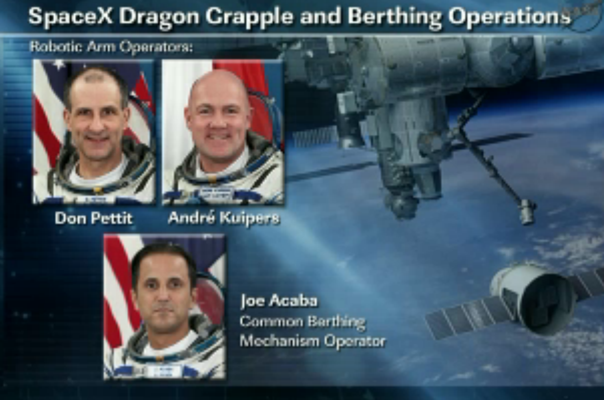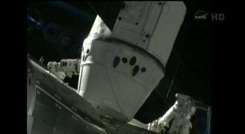 "We have confirmation at 10:52 of a nominal first-stage capture" was the first of two announcements made in this docking process, the last process that had to be made before the Dragon pod was officially attached to the ISS. At 11:02 CST the official call was made and the mission was complete, the entire mission taking 3 days 8 hours 18 minutes from start to finish. SpaceX, NASA, and of course SlashGear celebrate on this fabulous day for space travel!