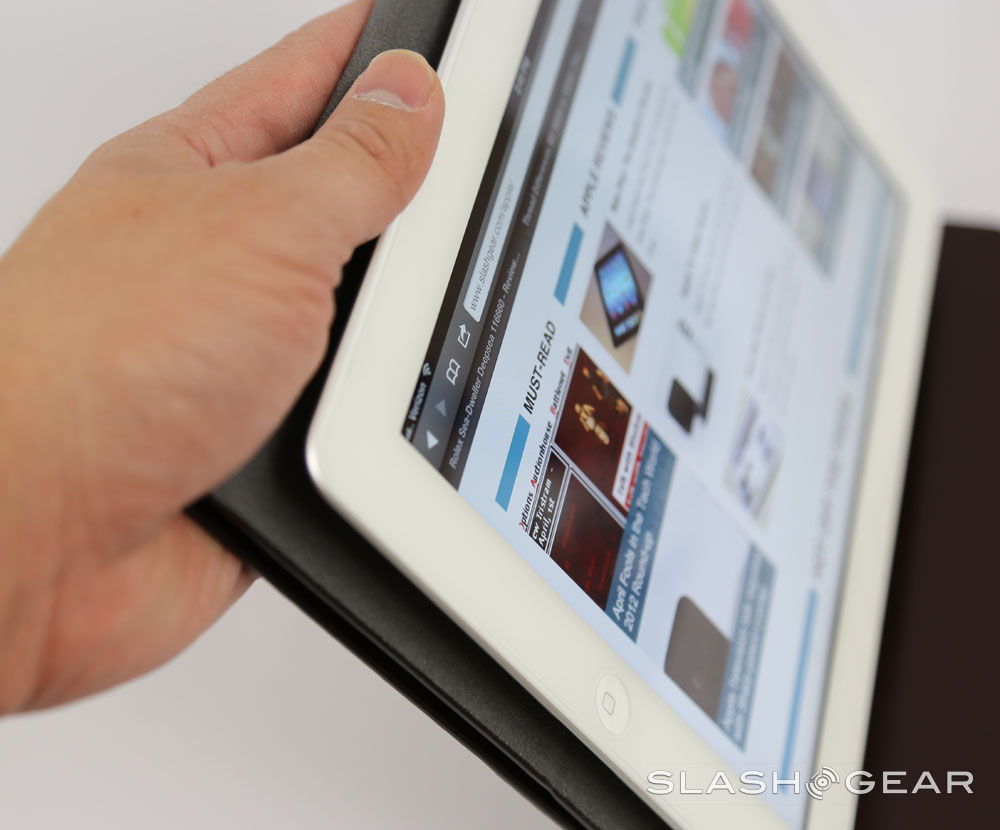 The folks at Spigen have sent us a pre-production GLAS.t unit for the 3rd generation iPad. This product is a sheet of protective glass which once you've removed a thin piece of paper coating affixes itself to the front of your iPad. Instead of protecting the already reinforced glass panel that exists on your iPad with the plastic of every other protective skin on the market, Spigen is bringing the strength that only another piece of glass can provide.