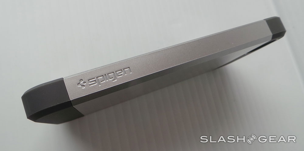 The bottom also has a set of grilles that allow your audio to continue blasting forth from your device like wild. The headphone port – one of the most important points on any case for case maniacs like us – is slightly wider than the hole – as it should be! Spigen SGP makes a point of noting that Apple EarPods and "earbuds with L-shaped plug (within 6.17mm diameter) including Beats by Dr.Dre" are compatible with this case specifically.