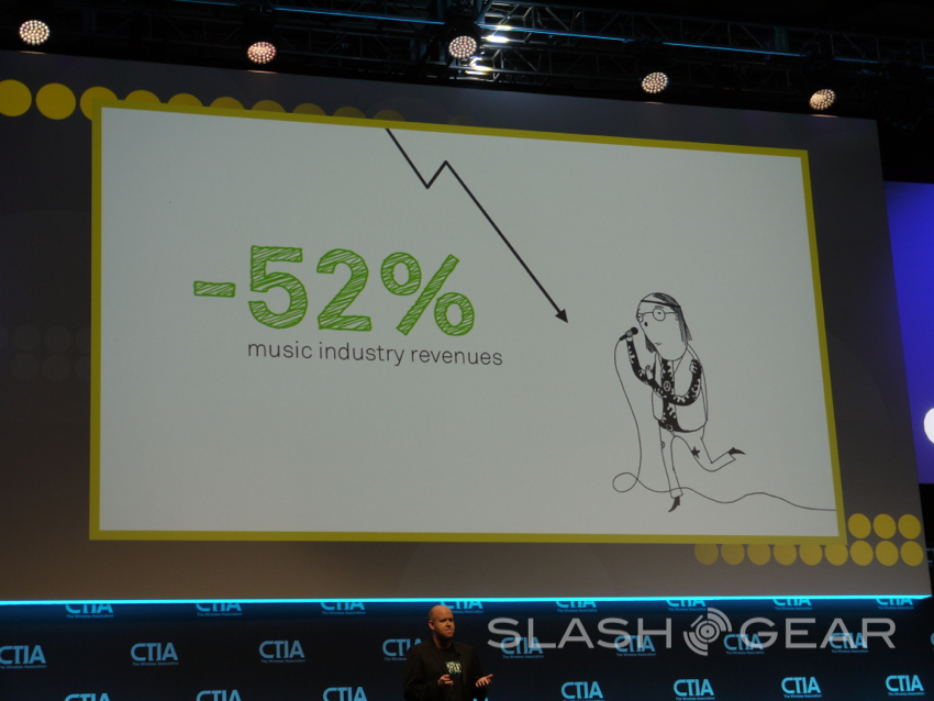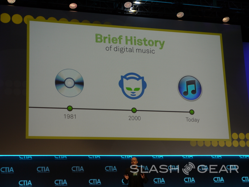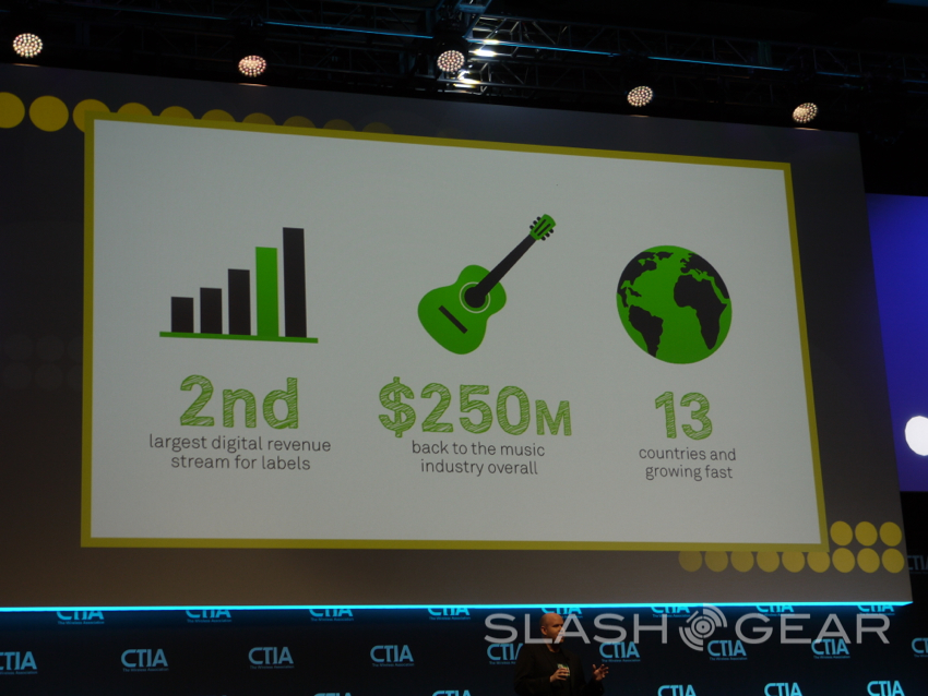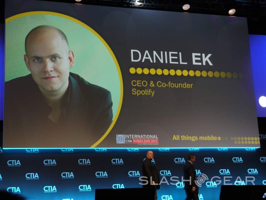This morning at the 2nd full day's CTIA 2012 keynote, Spotify CEO and co-founder Daniel Ek shared his views on the future of mobile streaming music with the world. With both free and premium offerings, Spotify is the second biggest revenue stream in the whole country in the UK, this model of course being hoped for by Ek as Spotify grows in the USA. They're already doing fairly well with the average Spotify user in the USA listening to 100 minutes of music a day, they having created 700 million playlists with Spotify software in the short number of months the service has been available in the states.