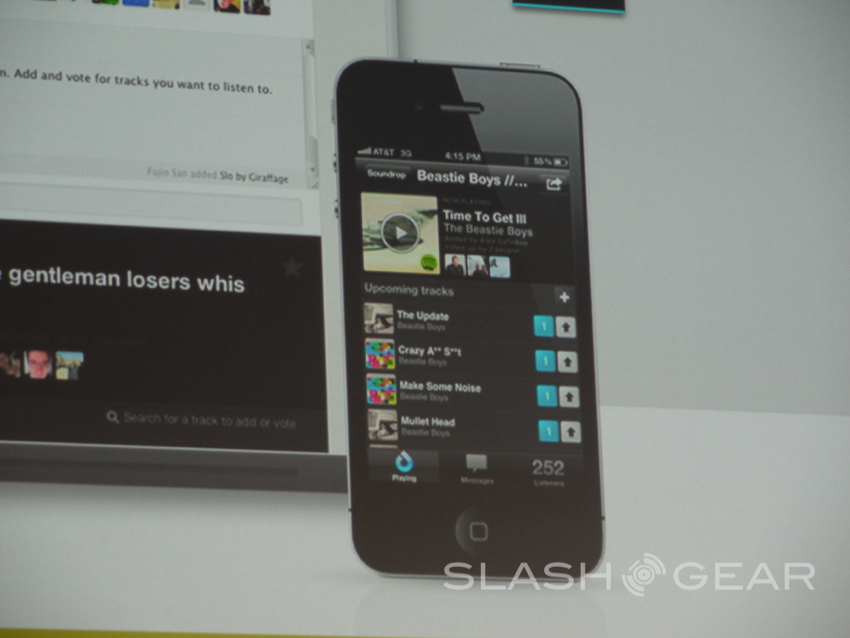 "Spotify thinks of itself as a platform," said Ek, "our first big step being integration with Facebook." March 2012 there were 1.5 billion shares from Spotify to Facebook, with 50 billion impressions – this of course showing the power of platform integration, so notes Ek. Expanding with Spotify Apps and delicious applications on the Spotify platforms as Sounddrop – which in the slide you see in the gallery below shows License to Ill, a move which we must assume is in honor of the recent death of MCA (RIP).