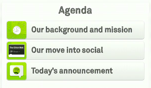 This week Spotify stepped out from the streaming music business into the greater world of the music industry as a platform – third party developers streaming in to work with Spotify to continue to change the world from one where piracy is king to one where people's options to get to that music easily reigns supreme. Daniel Ek, CEO and founder of Spotify stepped to the stage with a plan to outline Spotify's backround and mission, their move into social, and their big announcement for the day. What his and Spotify's mission was and is, Ek said, was to find the best solution outside of piracy for getting music to people's ears in as "good for everybody" a way as possible.