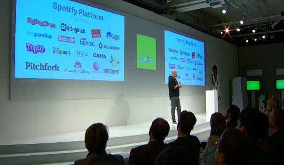 "Today, we become a music platform, with the launch of really innovative, integrated apps ... integrations that keep Spotify simple but layer in fun & social experiences. We've turned our client in an interactive platform where third-party developers can easily build HTML5 Spotify Apps via JavaScript." – Ek
