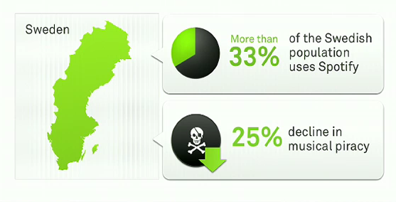 In the time since Spotify started up, Sweden adopted it on a major scale – 33% of the country uses the service! What's more impressive is that in that time music piracy fell 25% in the country – there's no denying that there MUST be some sort of a connection. Ek went through this and a collection of other impressive numbers on how fast Spotify is growing both in the USA and abroad, noting that Facebook has played a big part in this growth in the past few months. Then he spoke about the next big step for Spotify.