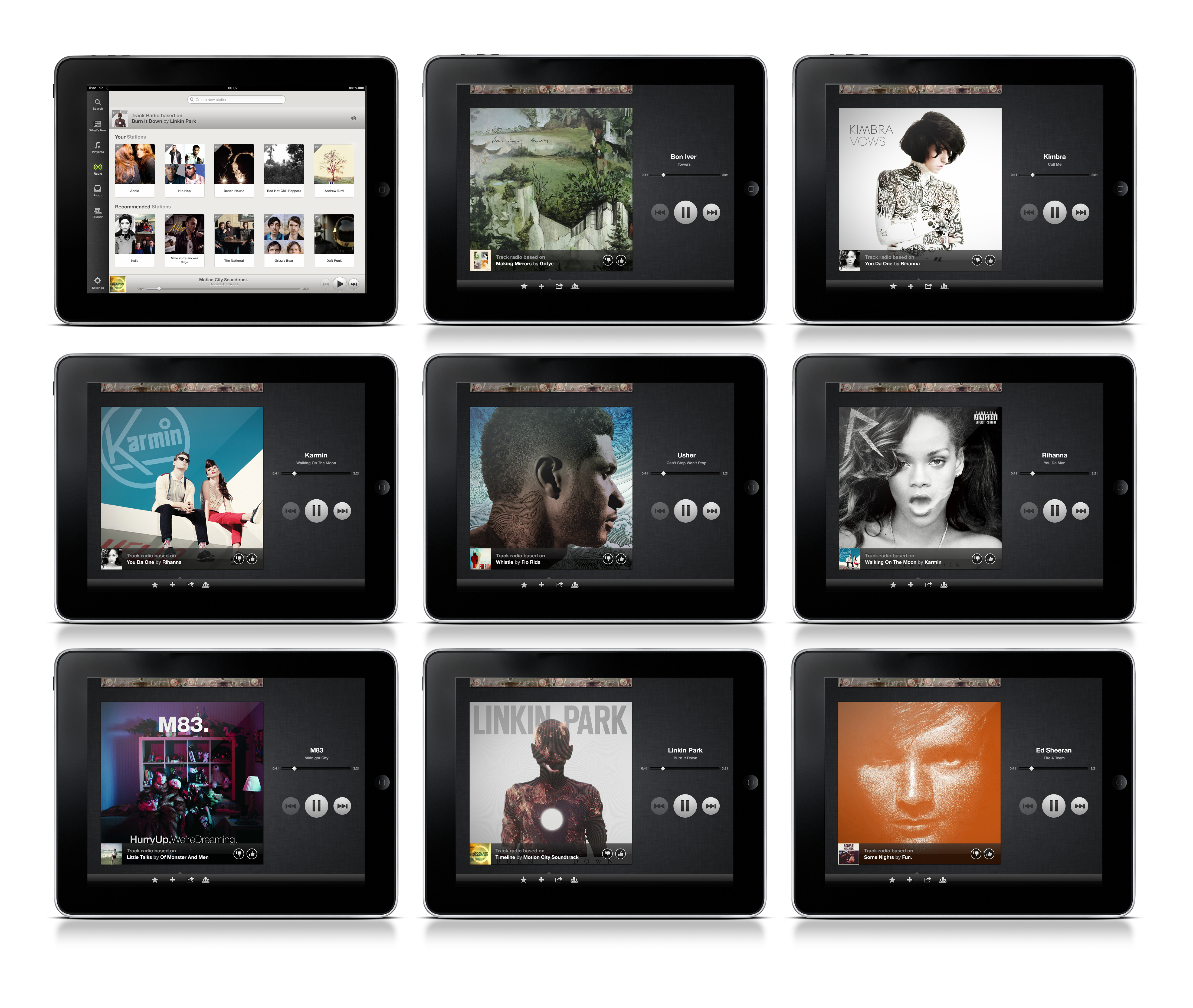 Spotify has brought its free mobile radio service to the iPhone and iPad, offering both ad-supported and premium subscribers unlimited streaming song access while on the move. A free download [Update: Spotify now says the app will be released in the "next few days"], the newly updated Spotify app allows listeners to construct personalized radio stations from the 16m-strong catalog, save individual tracks from them to their own playlists, and share radio stations with friends.