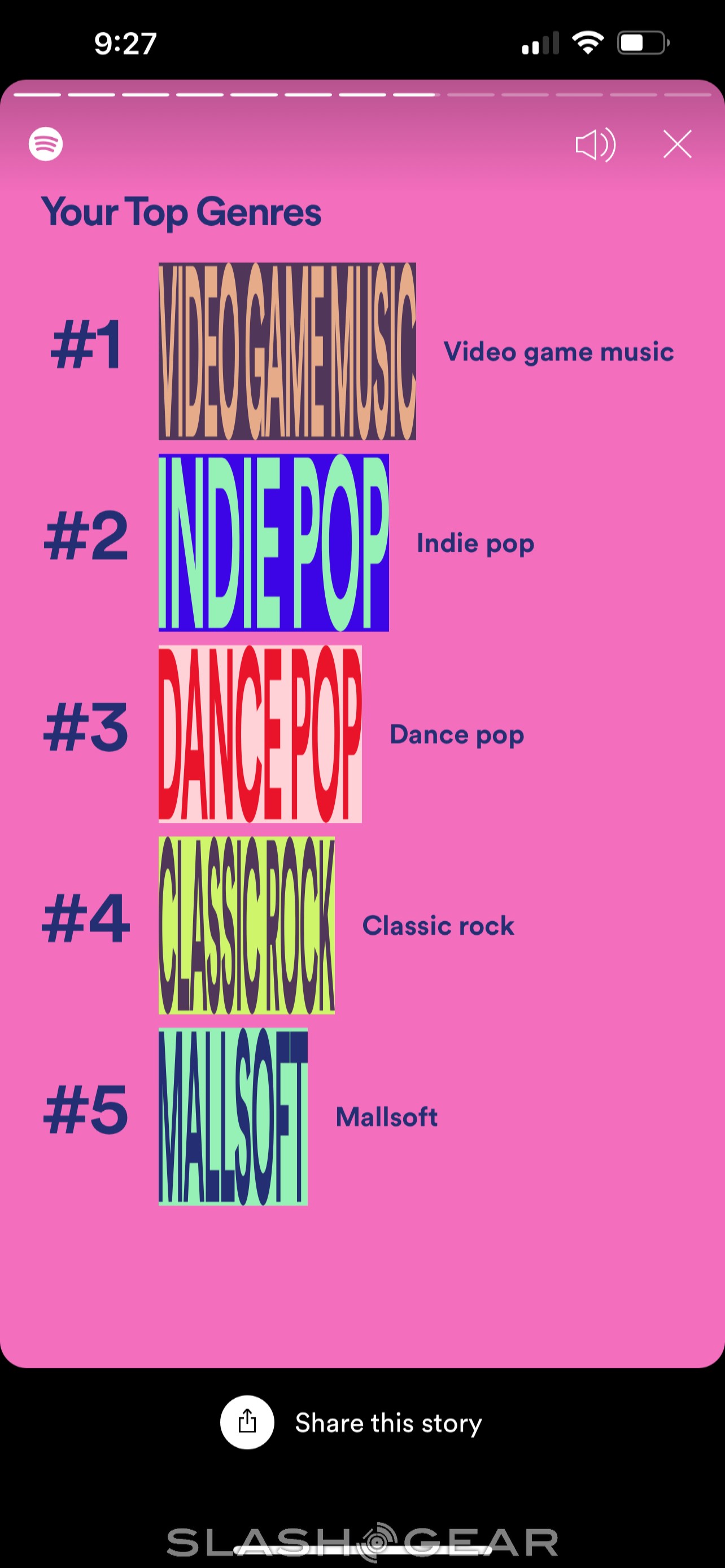 Aside from revealing your Audio Aura, Spotify Wrapped will also tell you what your most-listened-to genres for the year were. Thanks to Spotify getting very specific with its selection of genres, I'm guessing there will be some surprises regarding these lists. For instance, Spotify says that my fifth-place genre for the year is "mallsoft," which is a genre I didn't even know existed until today (as it turns out, mallsoft is a microgenre that belongs under the vaporware umbrella).