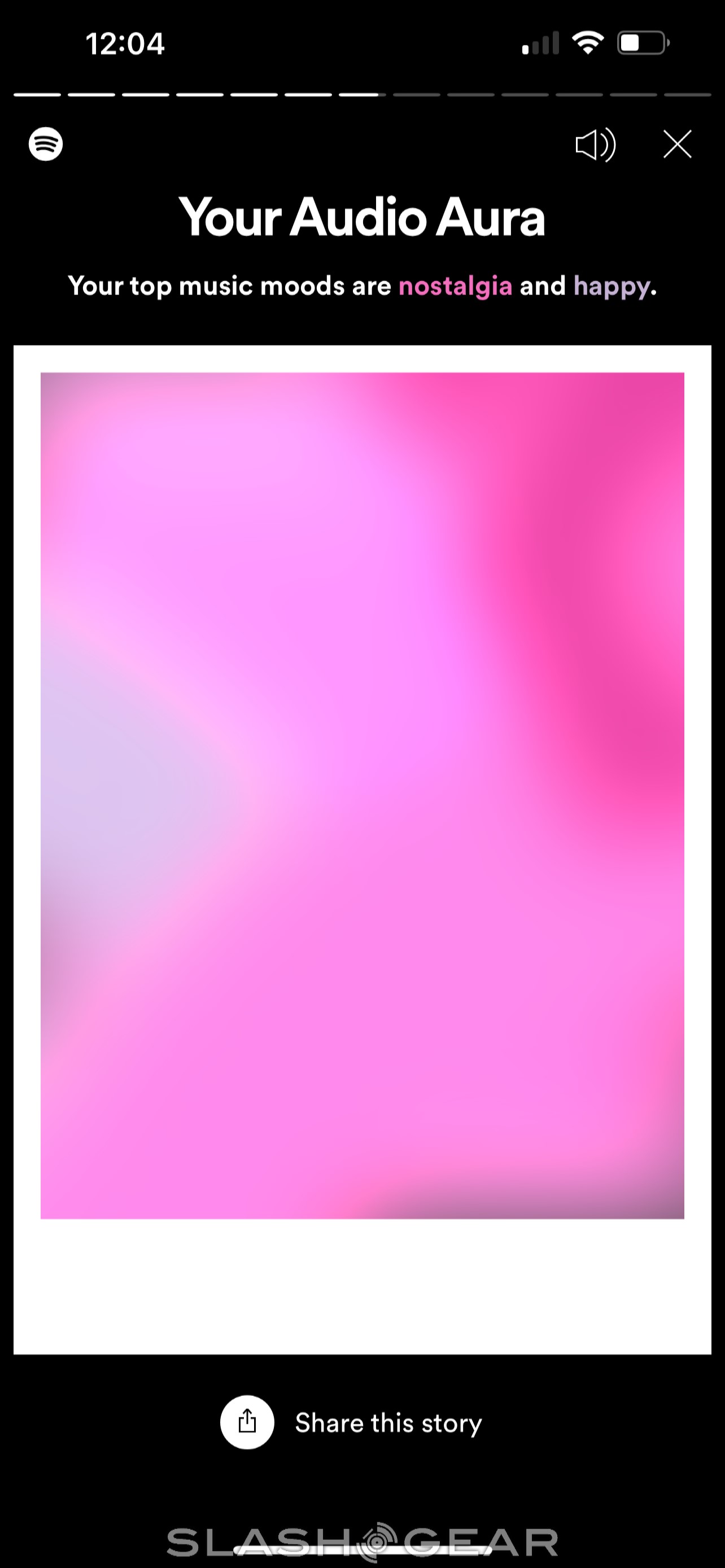 Even if you go into Spotify Wrapped with a good idea of what you listened to most, there are probably still some surprises lurking within. For instance, this year, Spotify Wrapped will also tell you what your "Audio Aura" is. Mine is a lovely shade of pink because my top music moods are "nostalgia" and "happy," apparently.