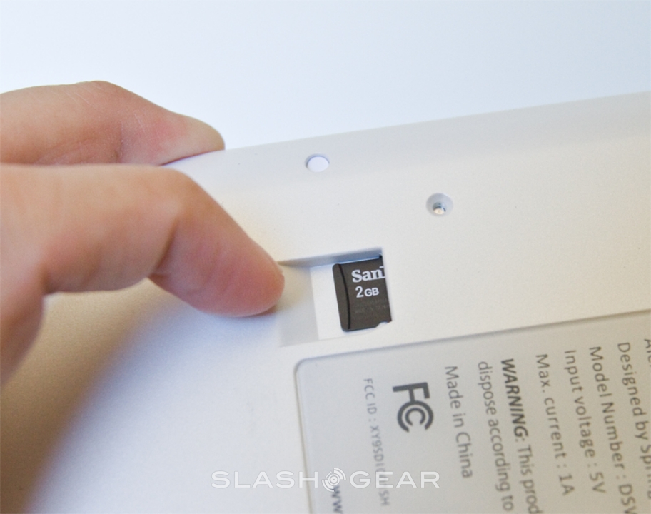 Spring Design's bizarre choice of a 2.5mm headphones jack rather than the more common 3.5mm is partially offset by their including a suitable headset complete with inline microphone for voice-note recording, but we'd have preferred to see an adapter in there too for people who'd prefer to use their own headphones. The stereo speakers are small but surprisingly loud, and you can have music playing in the background while you read. The Android Media app also supports video playback (3GP, FLV and MP4), though of course only on the LCD display.