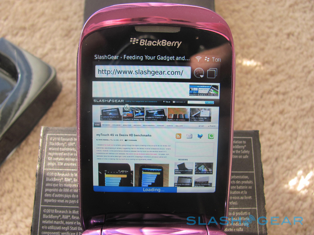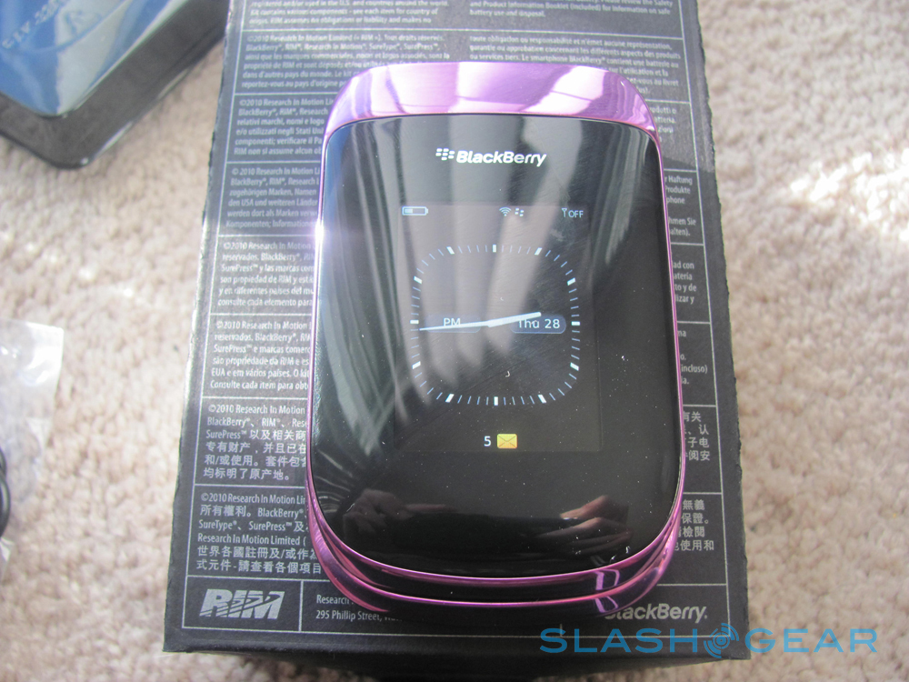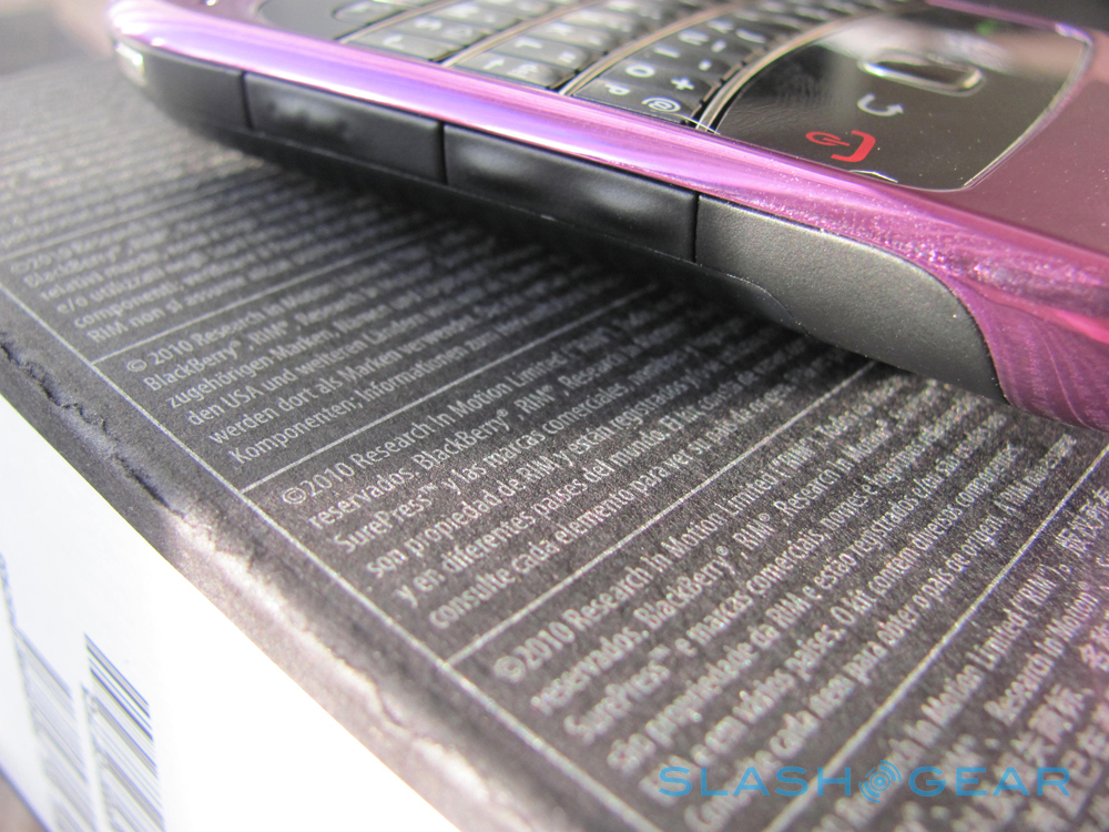 It runs BlackBerry 6 and navigates using a rather touchy optical trackpad.* The steel grey version will release on October 19, 2010, while the royal purple (the version I've got here,) will rule the streets in November 2010. For the full original press release on the 9670, head on over to this post and read for about an hour.