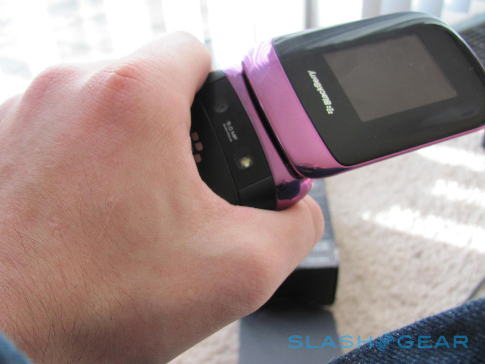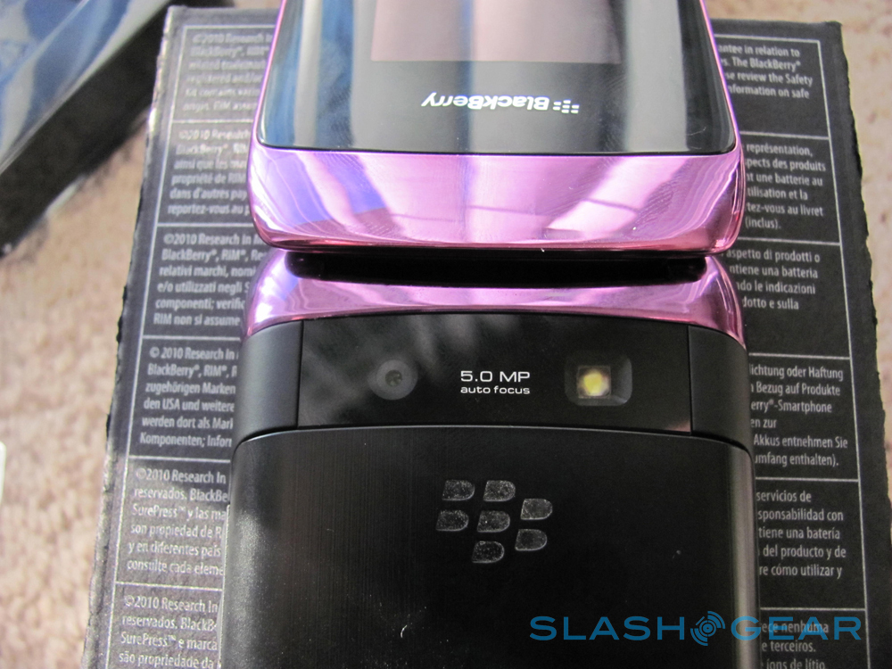 First, the details of this sassy beast: The BlackBerry Style 9670 drops on October 31st, 2010, it'll be priced at $99.99 following a $100 mail-in rebate. It's the latest clamshell phone from RIM, with a full QWERTY keyboard inside and both internal and external displays. It has both GPS and WiFi, a memory card slot that supports up to 32GB chips, and a 5 megapixel camera with flash and video recording on the back of the main body (not the flip-up.)