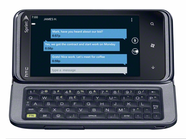 Available from Sprint on March 20, the HTC Arrive™ smartphone (announced by HTC globally as HTC 7 Pro) offers the Windows Phone 7, glance-and-go experience combined with an innovative design that features a sliding full QWERTY keyboard and tilt-up display. Its unique Start screen with Hubs gives easy access to the user's most valuable content and customizable Live Tiles come to life with real-time updates from the Web.