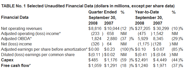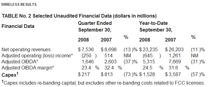 Sprint Q3 2008 Financial Report: Revenue & Subscribers Both Down