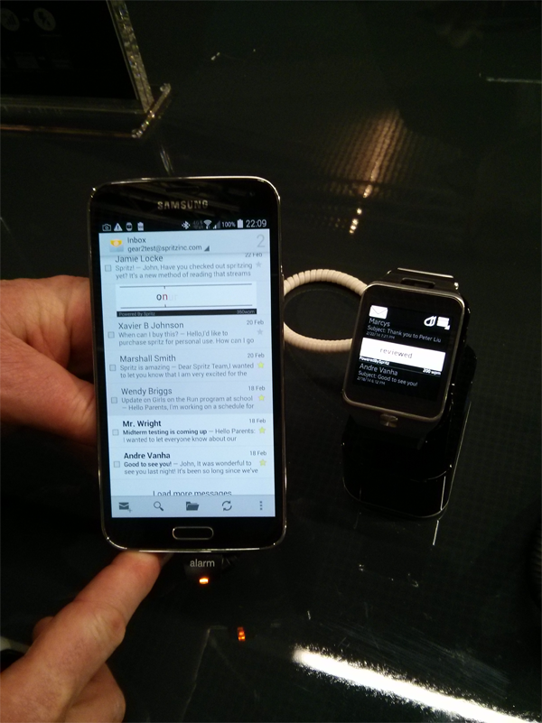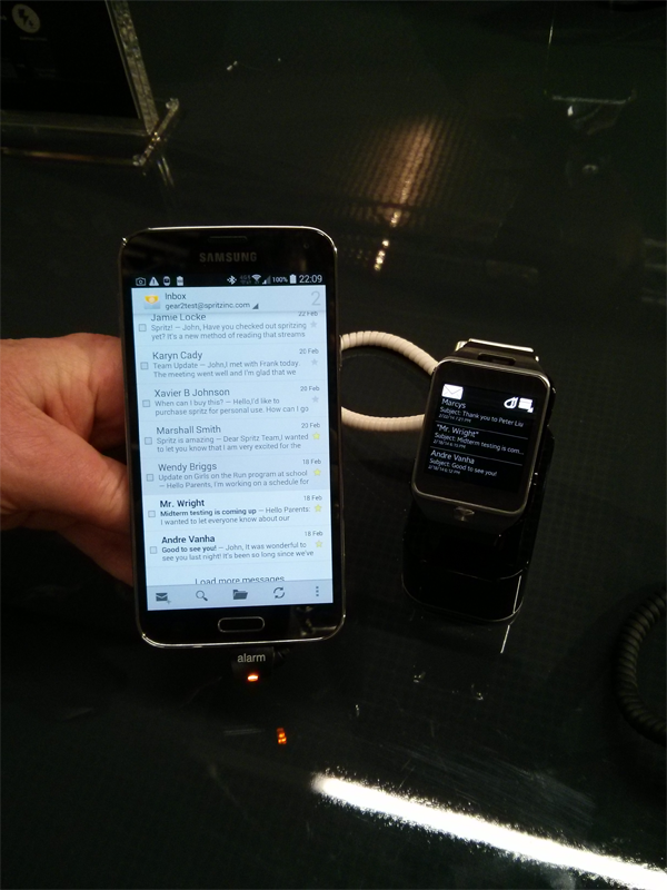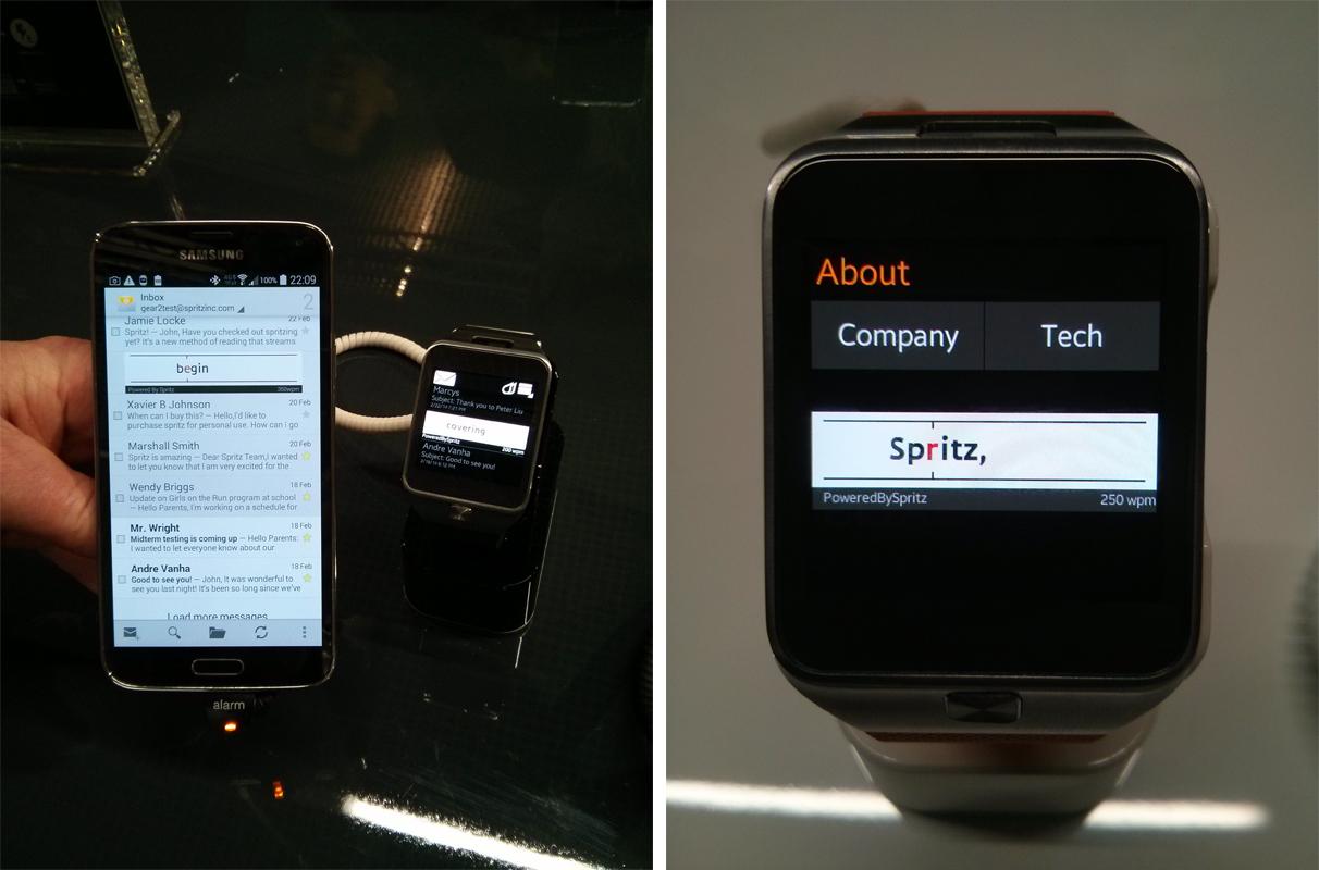 Revealed at MWC 2014, and already demonstrated as part of Samsung's launch for the Galaxy S5 and Gear 2 smartwatch, Spritz works by putting the core of each word in a sentence in the same place on-screen. By keeping the words in that one spot, you don't waste time moving your eyes around the display, along and across different lines.
