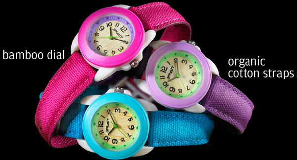 If you are the sort that only buys things that are green and biodegradable this is the watch for you. The watch is called the Sprout Eco-Friendly Timepiece. There are several different watch styles to choose from and they all share the same green specifications. The watches use a bamboo face and the cloth bands are made from organic cotton.