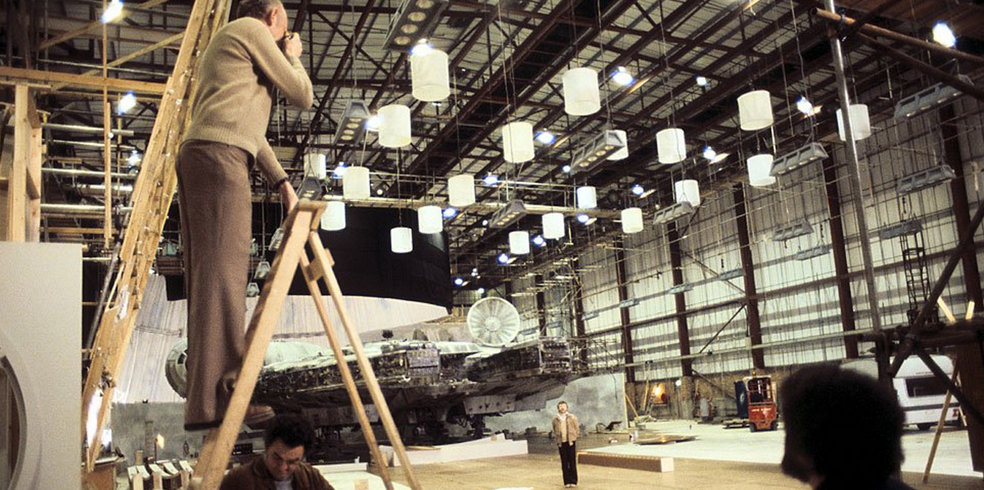 Below you're also seeing images of the original full-sized Falcon being constructed in 1979. Here it was being made for The Empire Strikes Back in Pembroke Dock in Wales before it was transported to Elstree Studios in Hertfordshire to prepare for filming. It's original code-name was "Magic Roundabout."