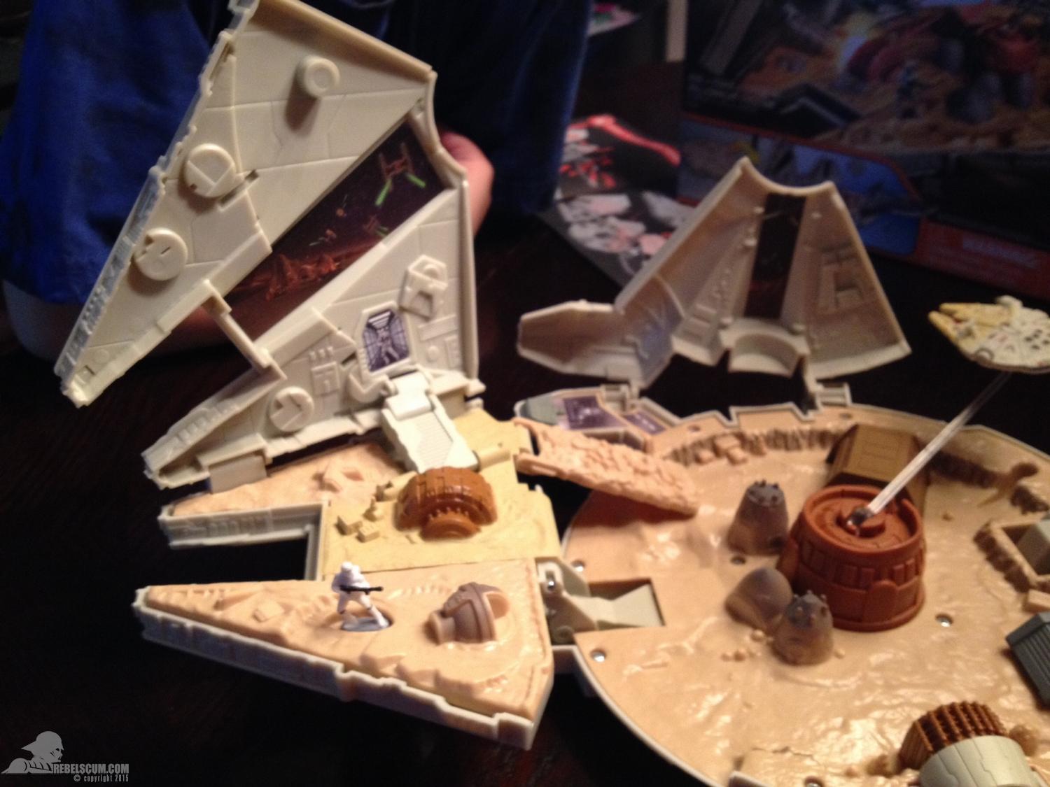 Shots of the toys open reveal they're decently big, and come with small figurines and moveable parts. It isn't clear from the pictures how much the box set costs. Have you found any The Force Awakens toys at your own local toy store? Shoot us a message if you have!