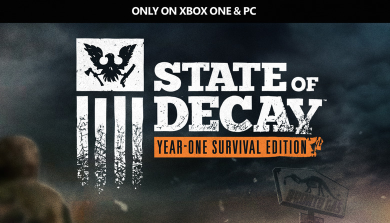 On Xbox One, this game will be called State of Decay: Year-One Survival Edition. This includes State of Decay in newly amped-up 1080p, add-on packs Breakdown and Lifeline, and content never before seen by the public.