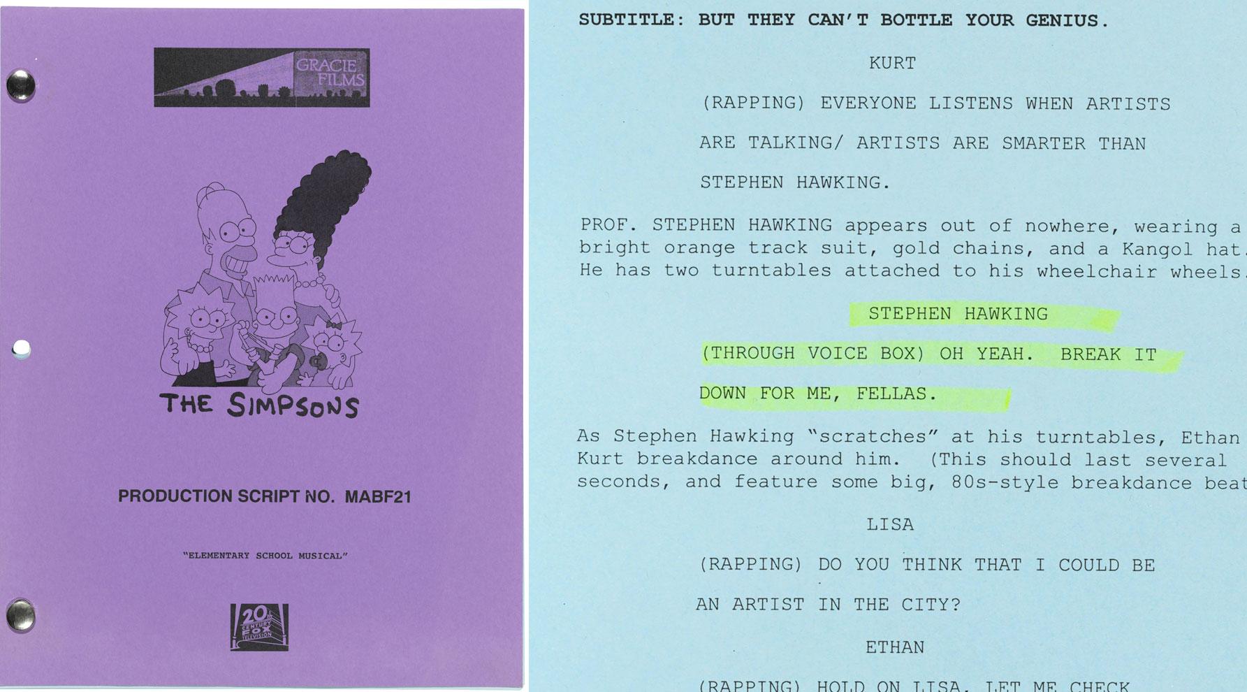 • Stephen Hawking makes an appearance on The Simpsons (original Simpson's script used by Hawking)