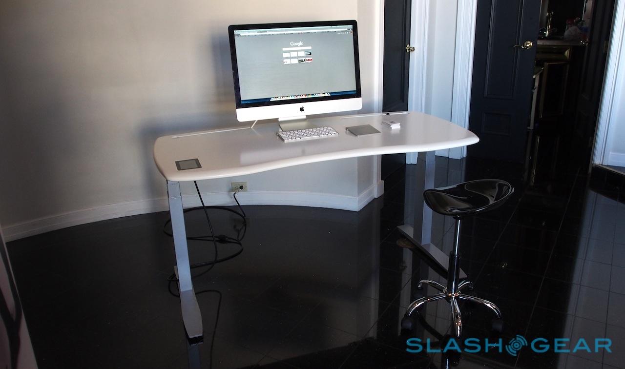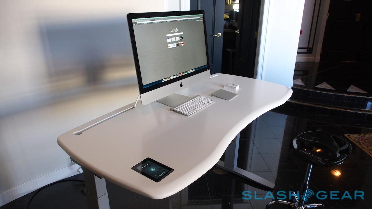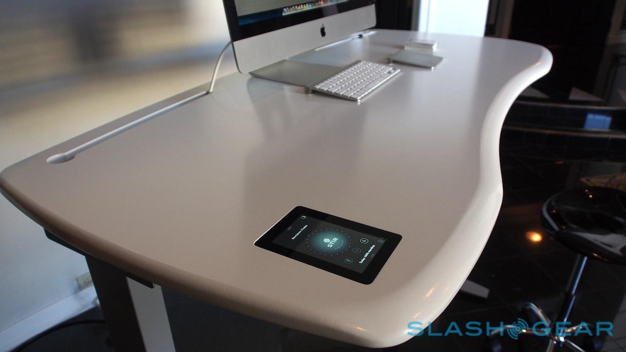 Whisperbreath – where the desk prompts users to change position every so often, by gently rising and falling roughly an inch – is still present, as are movement and calorific burn counters, but there's Android and iOS sync support in the pipeline.
