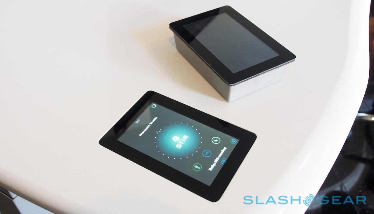 The result is Stir Kinetic Desk M1. Where F1 has sharp edges, the M1 has curves and tapers. The motors are still enclosed in the slim metal legs, but they're now faster; the brain of the desk is four times faster, too, using a 1GHz Cortex-A8 processor and a larger, 5-inch LCD touchscreen that's brighter, has broader viewing angles, and now gets an anti-glare treatment.
