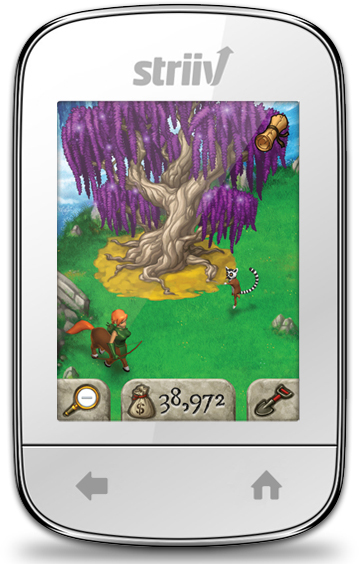 Meanwhile, more long-term stats over the lifetime use of the device are also collected, with an online leaderboard that's socially-enabled as well. Striiv has a Farmville-esque game called Myland, in which players can earn new characters, plants and buildings by exercising.