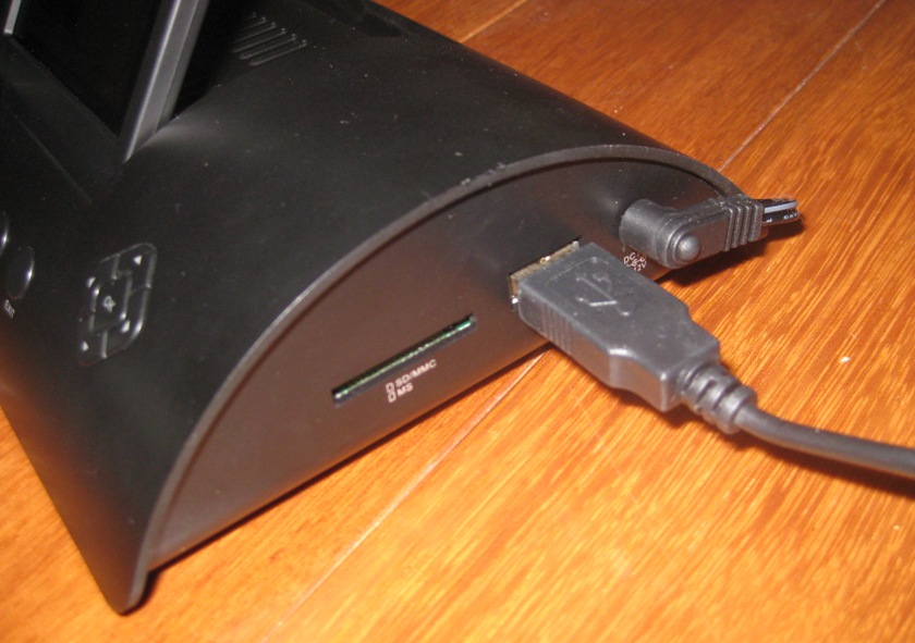 For your money you get a mains-powered desk lamp – that uses 18 LEDs rather than traditional bulbs – with a 3.5-inch 320 x 240 LCD display sticking up out of the base. 512MB of onboard storage can be augmented either via the SD/MMC/MS card slot; a USB port allows you to hook the lamp up to your computer