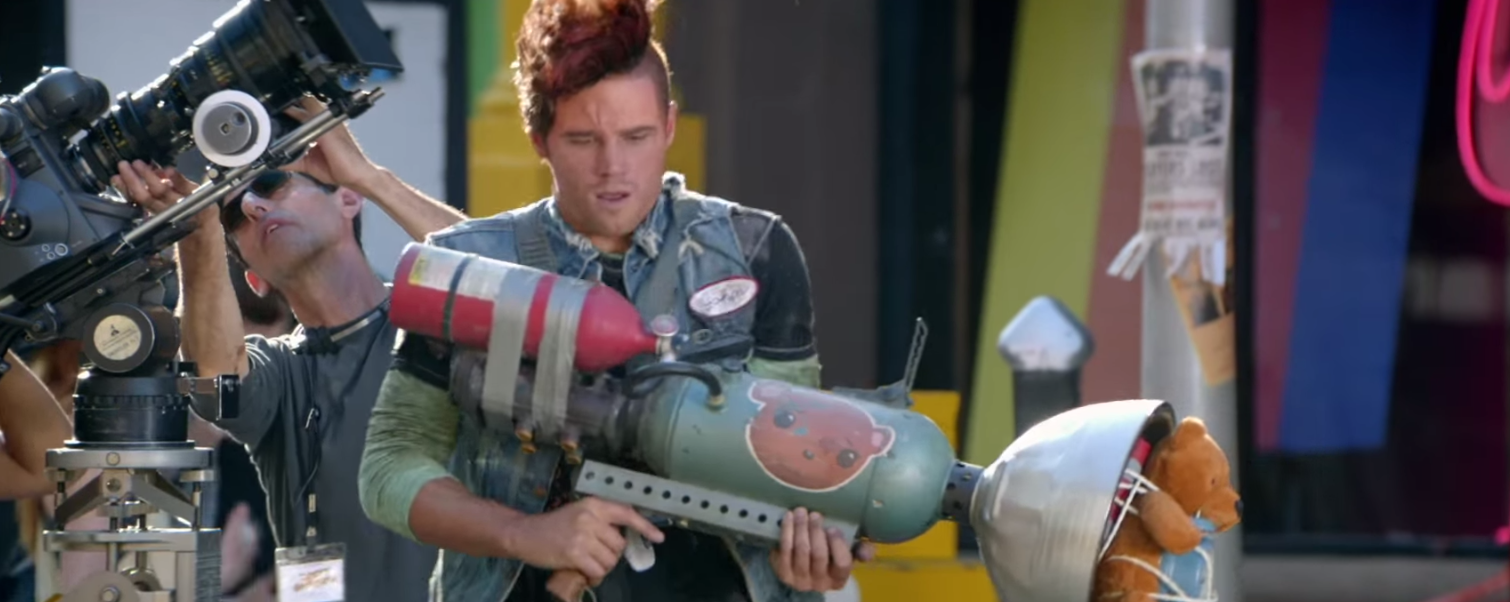 This morning the folks behind Sunset Overdrive have let it be known that they really can't create a live-action trailer for their game. It's be too crazy. It'd get too nasty. Instead, they've opted to make an effort to parody a behind-the-scenes sort of situation with bright colors and goop.