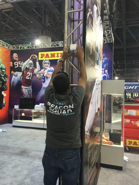 Though you won't see their name plastered throughout the festivities this weekend, the beacons pushing info to your phones are courtesy of Gimbal. Crews were spotted putting up Gimbal beacons this weekend, strategically placing them to best serve guests. A spinoff of Qualcomm, Gimbal likes to remain as behind the scenes as the beacons they provide.