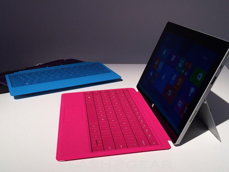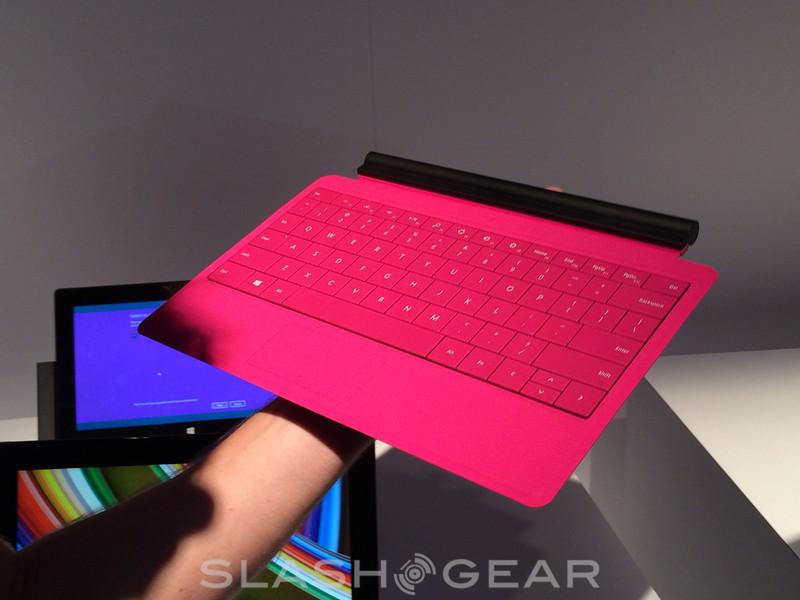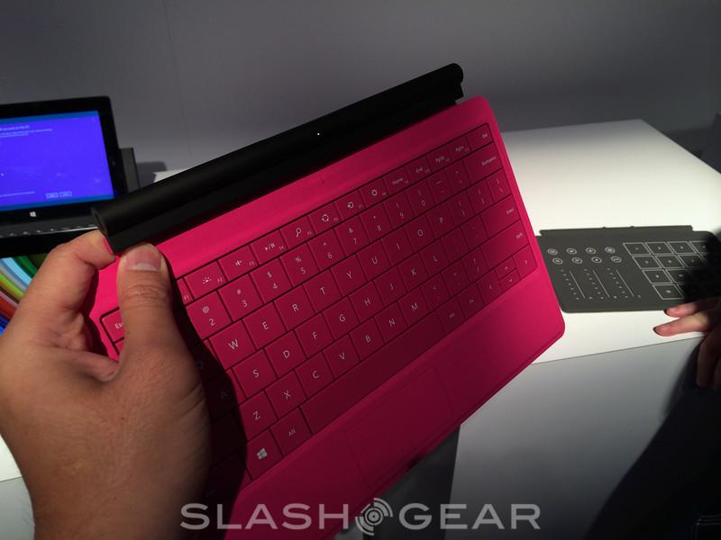 The new Type Cover 2 works with a new collection of colors, including a stark black and bright blue, pink and purple. Blue and Pink are also called magenta and cyan here by Microsoft. These new units work with a newly enhanced touchpad for Windows 8 gestures as well as a set of keys with quieter click mechanisms.