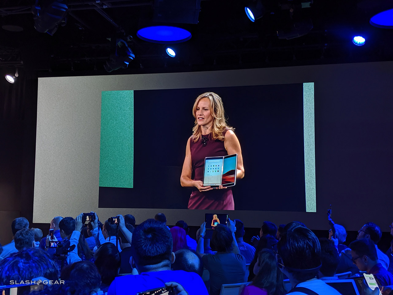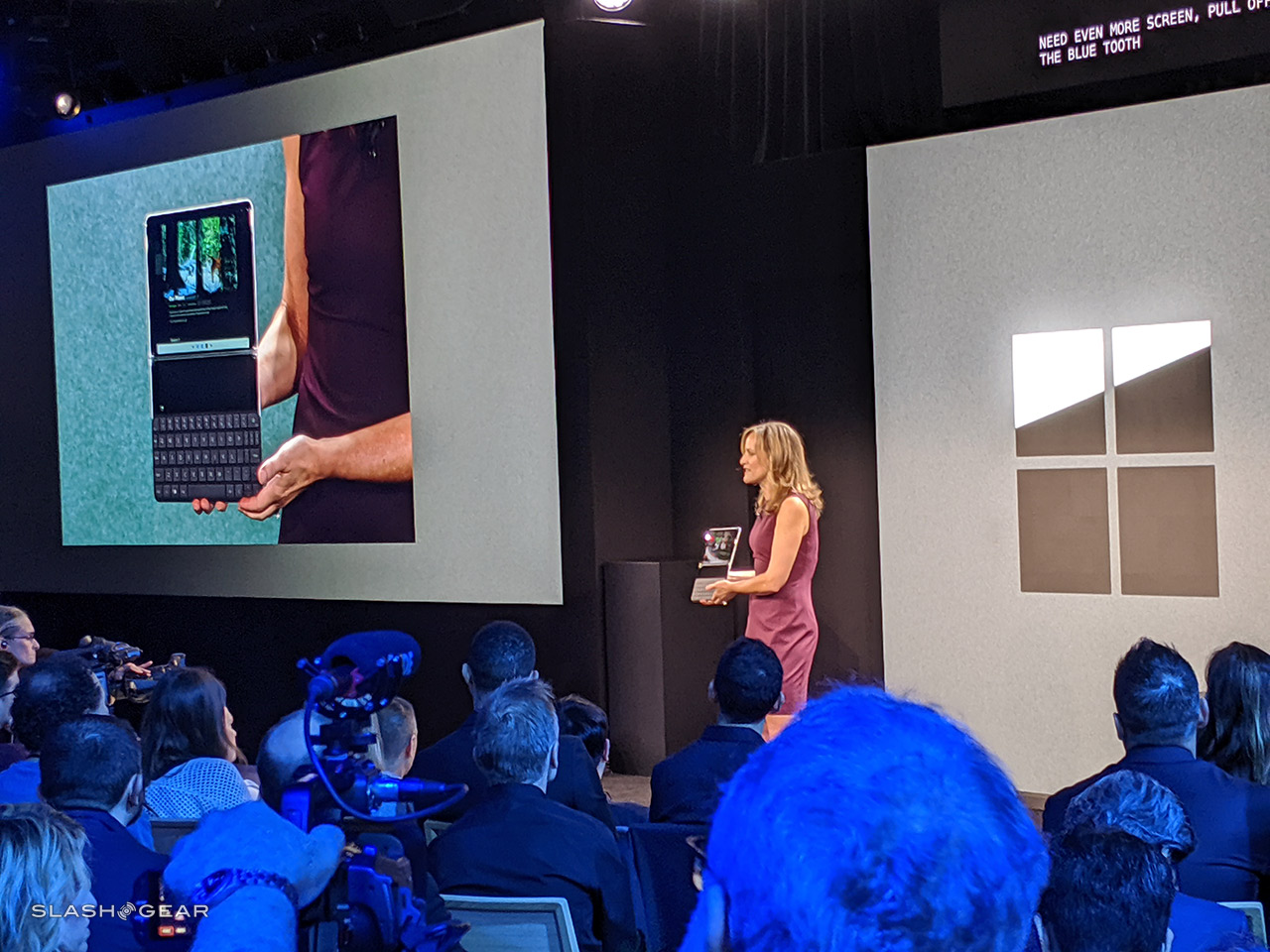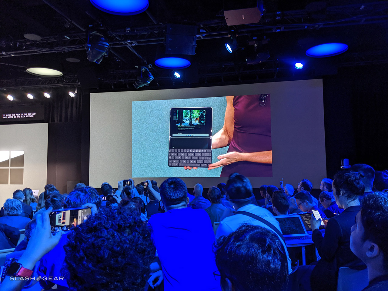 This device will be launched with Windows 10X. This is a software system that was made specifically for this sort of form factor first – it'll likely expand well beyond what we see here before this device's release.
