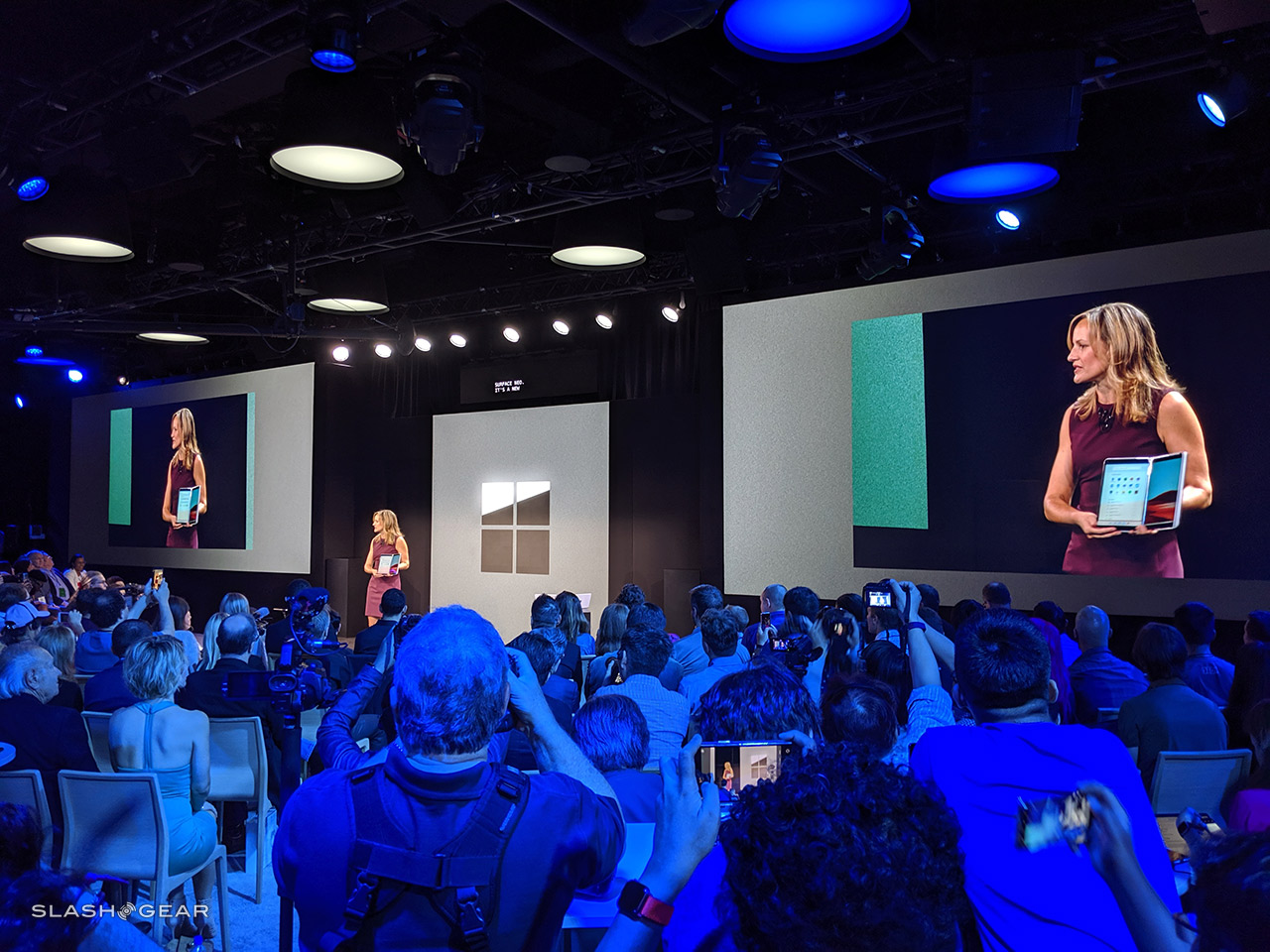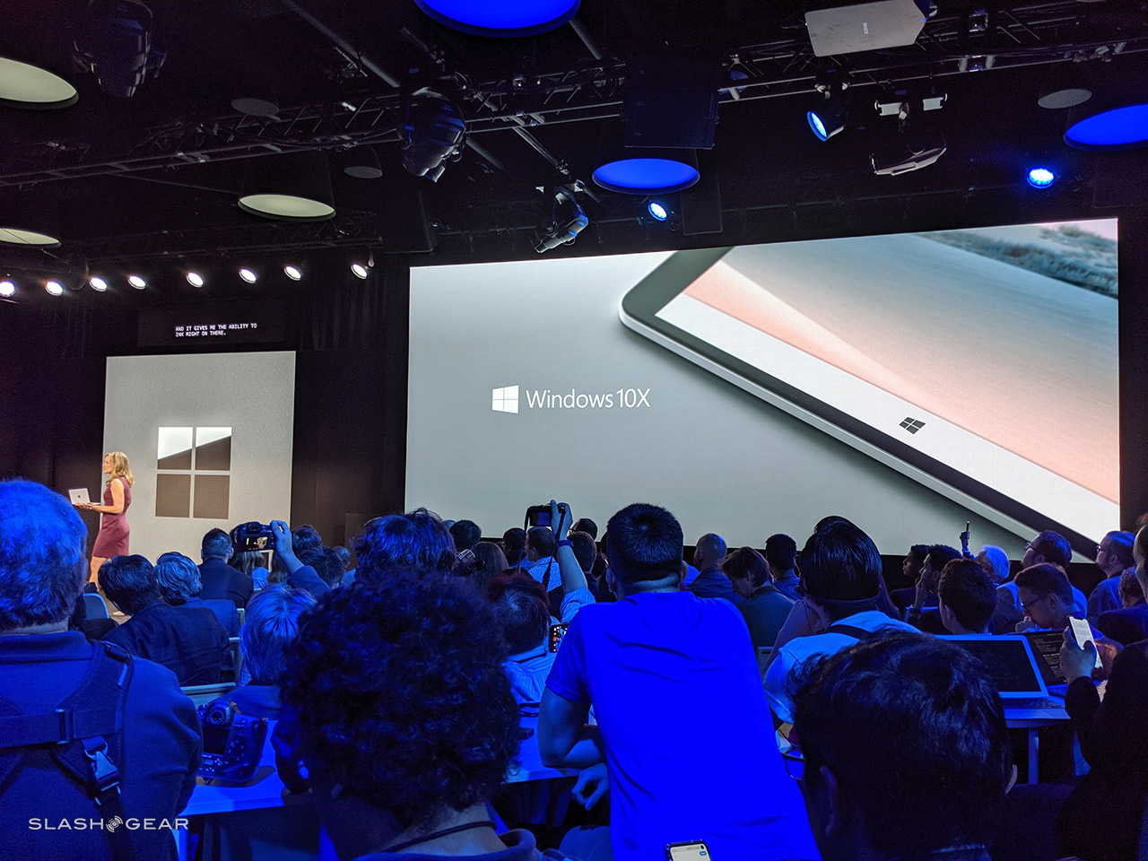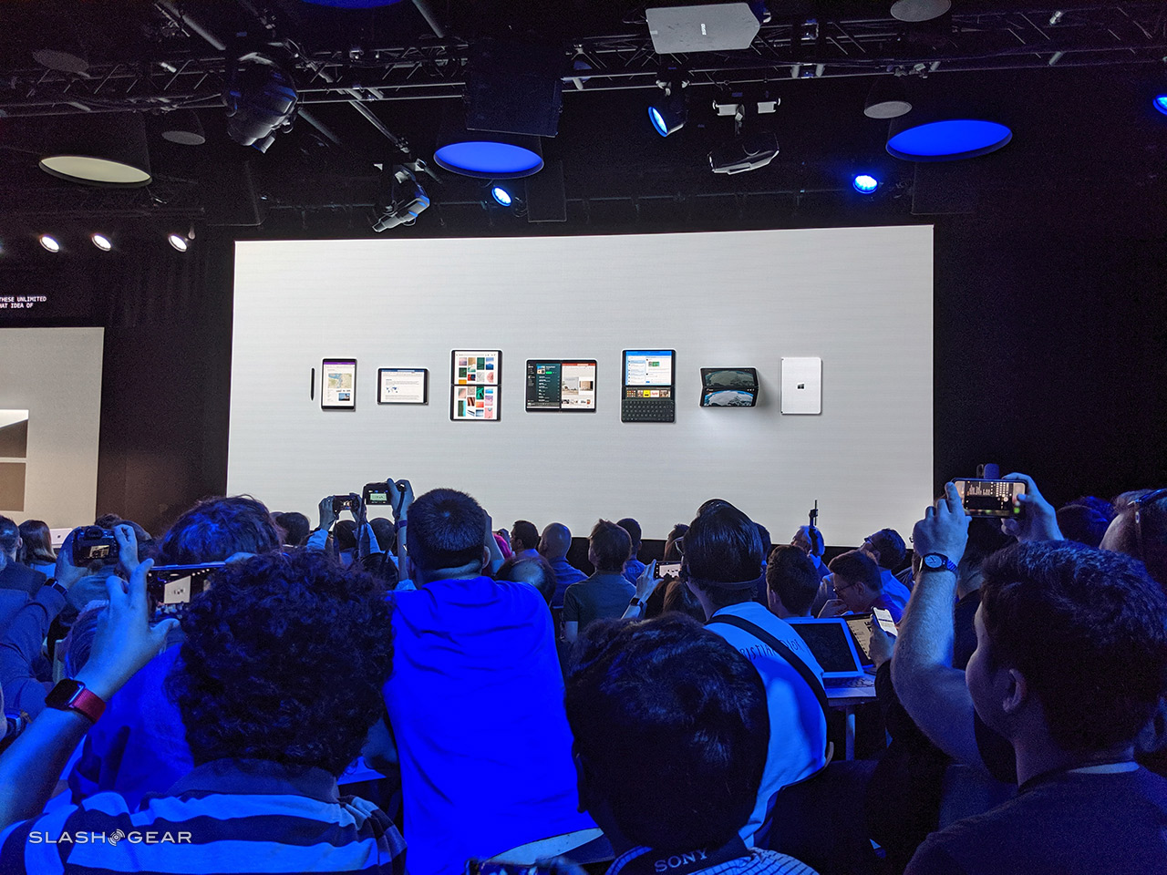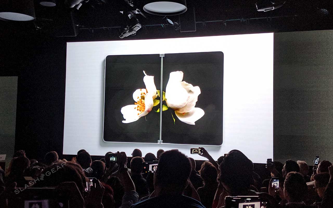 This device will be launched with Windows 10X. This is a software system that was made specifically for this sort of form factor first – it'll likely expand well beyond what we see here before this device's release.