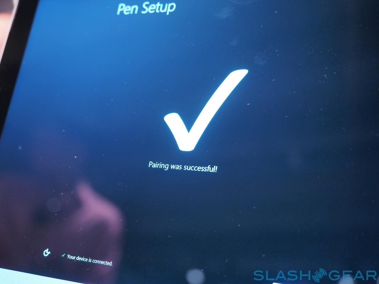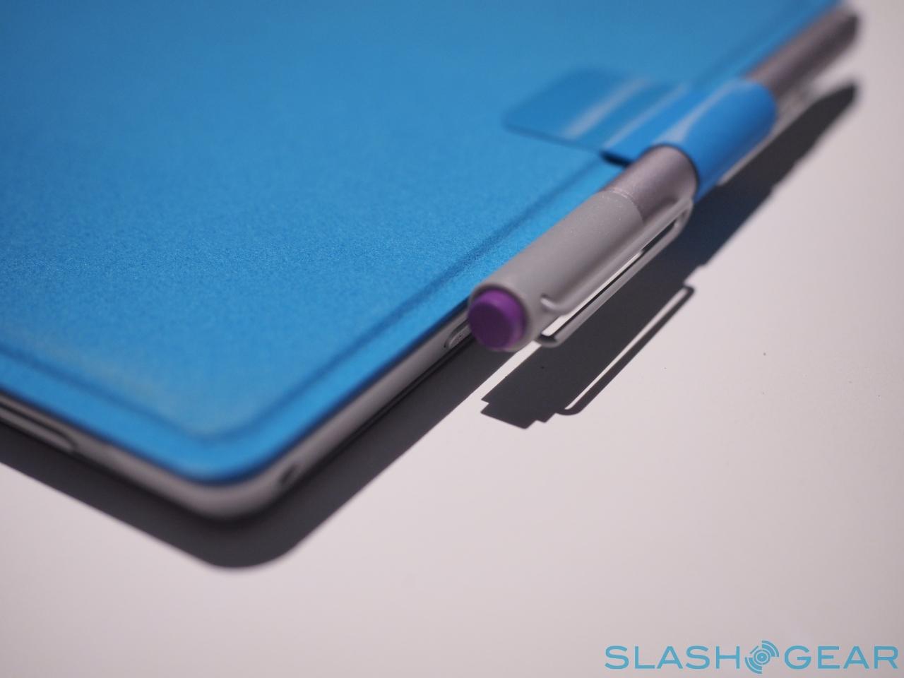 On the side of the keyboard there's a loop for the pen, which Microsoft is insisting on not referring to as a stylus. It feels good in the hand, nicely weighted and not at all cheap, unlike some digital pens we've seen with tablets in recent years. Microsoft has jumped ship from Wacom to N-trig to supply the digitizer technology this time around, but most importantly the digital inking is smooth and free-flowing. We were able to get some tight cursive and precise sketching down, with minimal parallax (where the pen nib doesn't line up with the on-screen ink).
