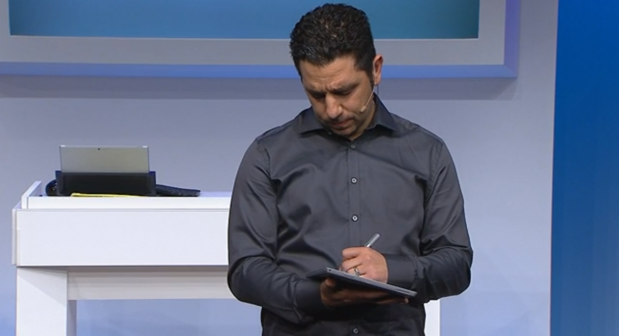 With the "lowest latency in the industry," according to Corporate vice president of Surface Computing at Microsoft Panos Panay, Surface Pro 3 can take notes quickly. Better than that, clicking the back and of the pen included with the Surface Pro 3 launches Microsoft OneNote in an instant, even if the device is "off."