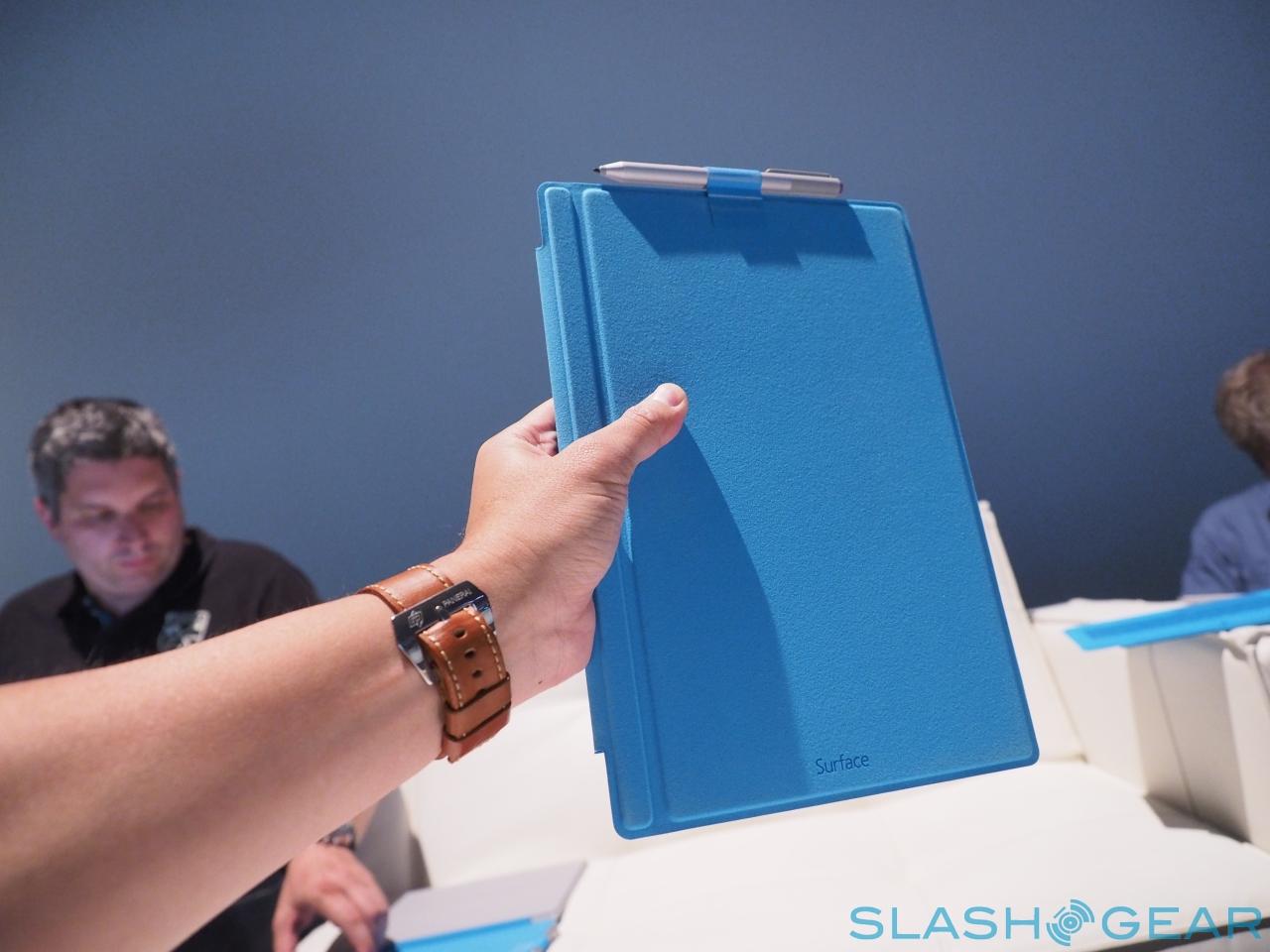 Meanwhile, by adding a second hinge right next to the usual one, the Type Cover can clip up against the lower bezel of the tablet, bracing for greater stability on your lap or desk.