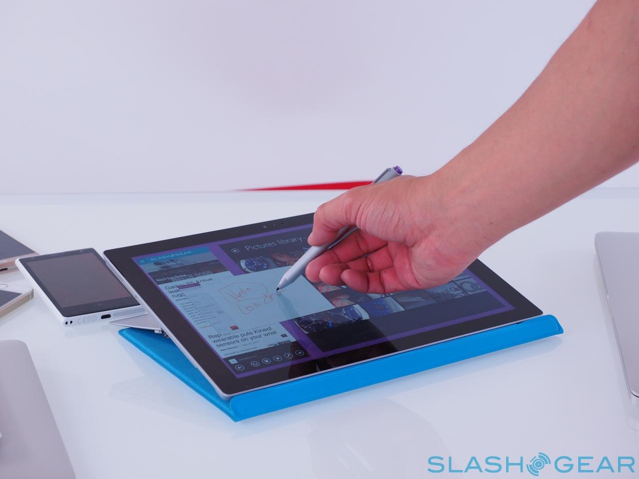 Whereas Microsoft previously used Wacom digitizer technology, the new tablet marks a switch to rival N-Trig: the company's touchscreen and pen components were thinner, helping keep the bulk down, as well as bringing the LCD panel closer to the Gorilla Glass top. In fact, there's admirably little parallax between the point where the nib touches the screen and where the digital ink is left trailing.